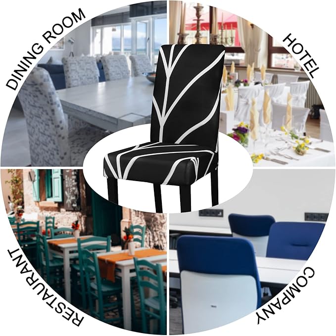 JQinHome Black Chair Covers for Dining Room Set of 6, High Stretch Removable Washable Parsons Chair Slipcover for Home Party Hotel Wedding Ceremony (6PCS, Geometric)
