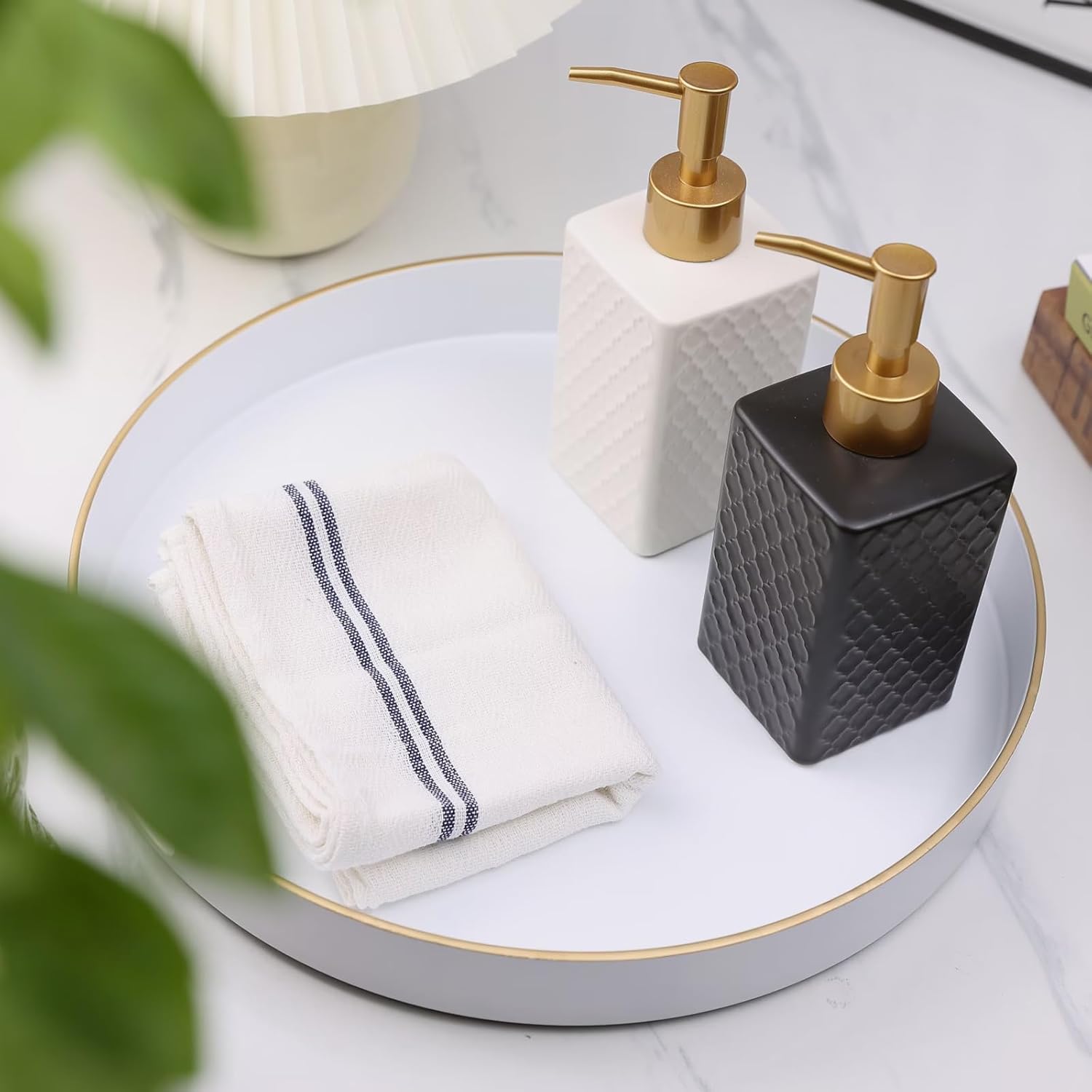 White Round Decorative Tray with Handles, 13" Versatile Serving Tray for Coffee Table, Ottoman, Ideal for Serving, Displaying, Organizing