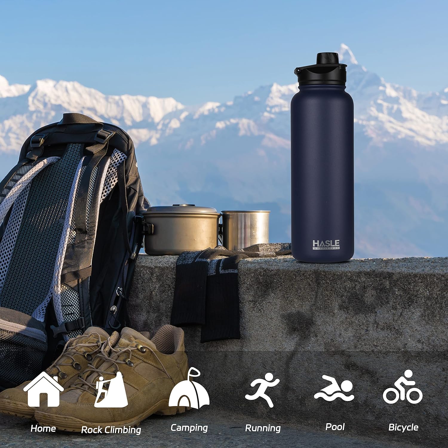 HASLE OUTFITTERS 40oz Stainless Steel Water Bottle, Vacuum Insulated Double Walled Leak Proof Sports Water Bottle with 2 Lids (Straw and Spout Lid) Thermo Mug Keep Cold and Hot(Navy,1)