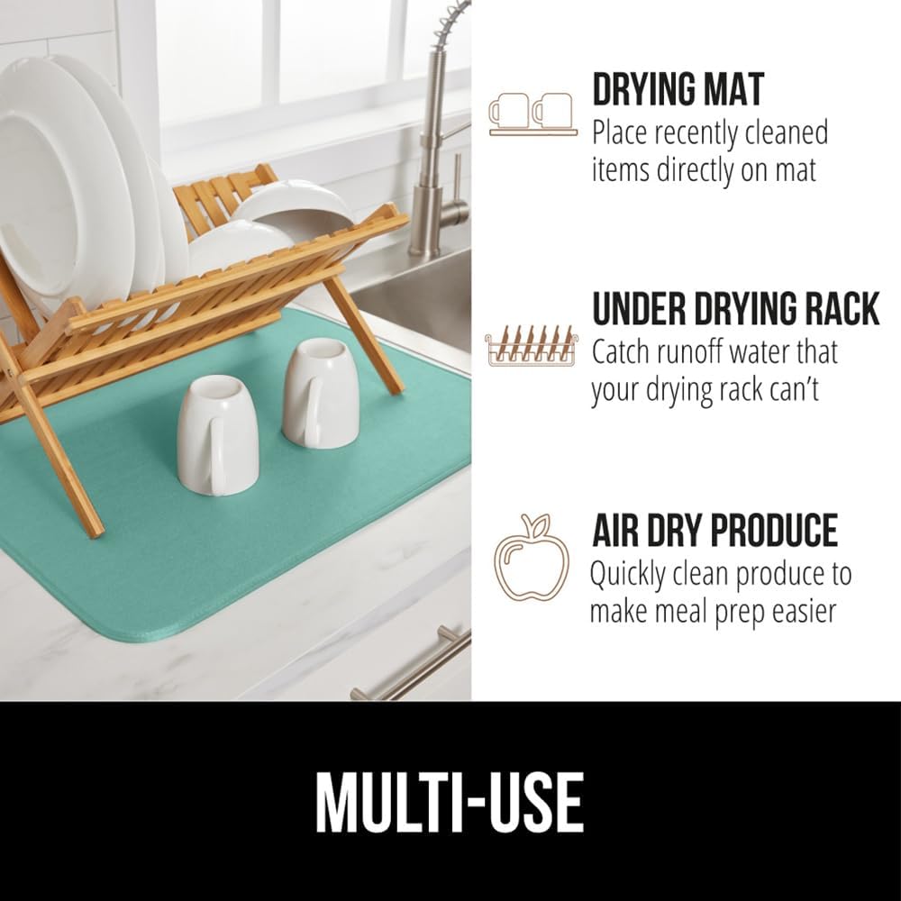 GORILLA GRIP Ultra Water Absorbent Microfiber Dish Drying Mat, 18x24, Quick Dry Thick Mesh, Slip Resistant Pad for Sink Dishes or Under Rack, Kitchen Counter Accessories, Machine Wash Mats, Mint
