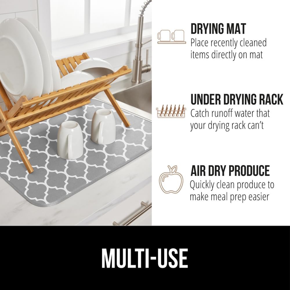 GORILLA GRIP Ultra Water Absorbent Microfiber Dish Drying Mat, 18x24, Quick Dry Thick Mesh, Slip Resistant Pad for Sink Dishes or Under Rack, Kitchen Counter Accessories, Machine Wash Mats, Quatrefoil