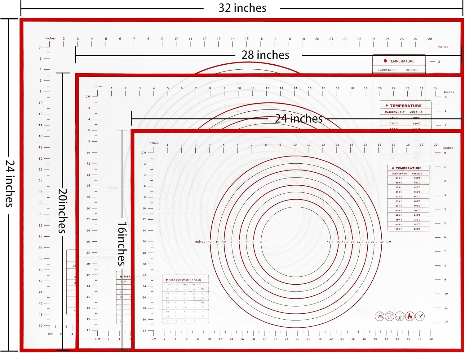 - MULTIPLE PRECISE MEASUREMENT MARKERS:With a special scale for baking pastry, it is convenient to measure, roll out pie dough and pizza crust is easy, and cut dough more worry-free.
