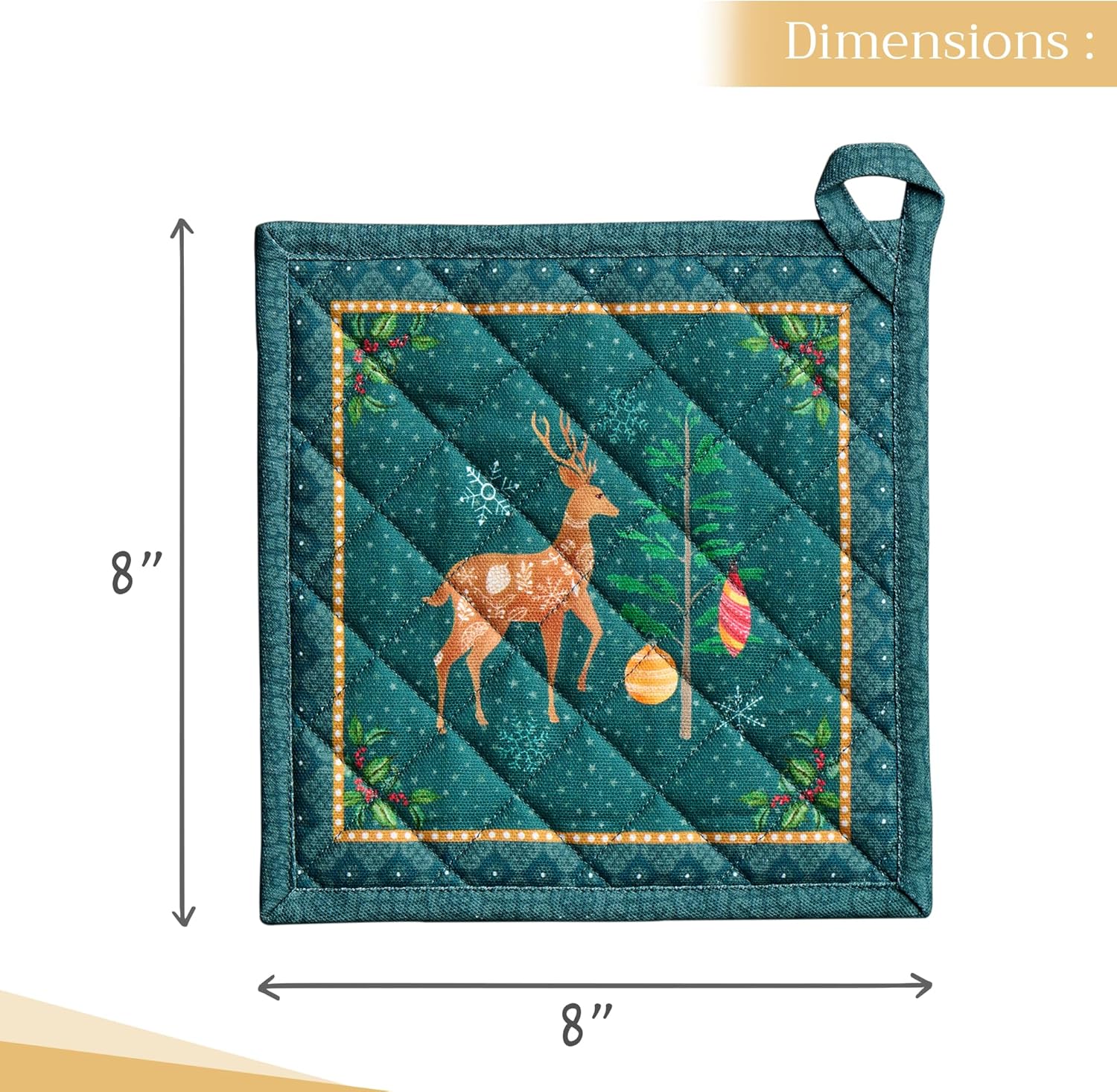 Maison d' Hermine Pot Holders 100% Cotton Heat Resistant Potholders 8" x 8" Hot Pads with Loop BBQ, Cooking, Baking, Grilling, Kitchen, Handling Hot Pans (Pack of 1, Hygge Christmas)