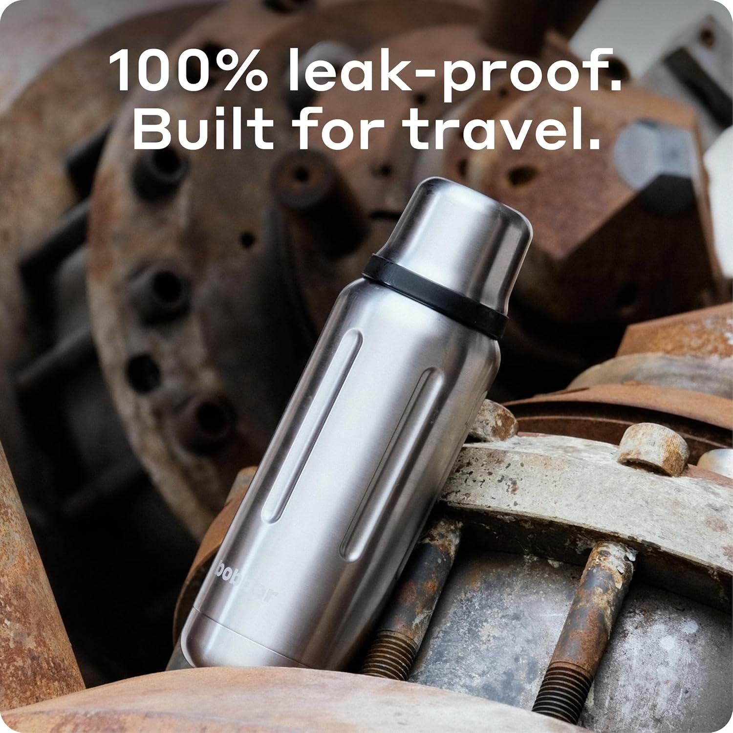BOBBER 26 oz Stainless Steel Travel Thermos for Hot Drinks – Dishwasher Safe Metal Water Bottle with Cup Lid for Men, Hiking, Travel – Keeps Hot for 36 Hours – BPA-Free, Vacuum Insulated (Matte)