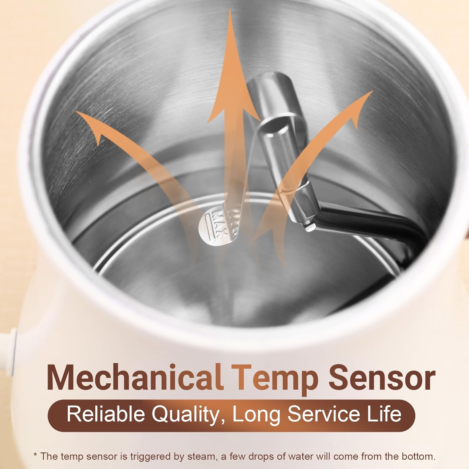 - Durability: Unlike other electric kettle made of plastic or easy faulty temperature sensor, its stainless steel mechanical temp sensor is more reliable and durable, it expanded its serving life a lot.
