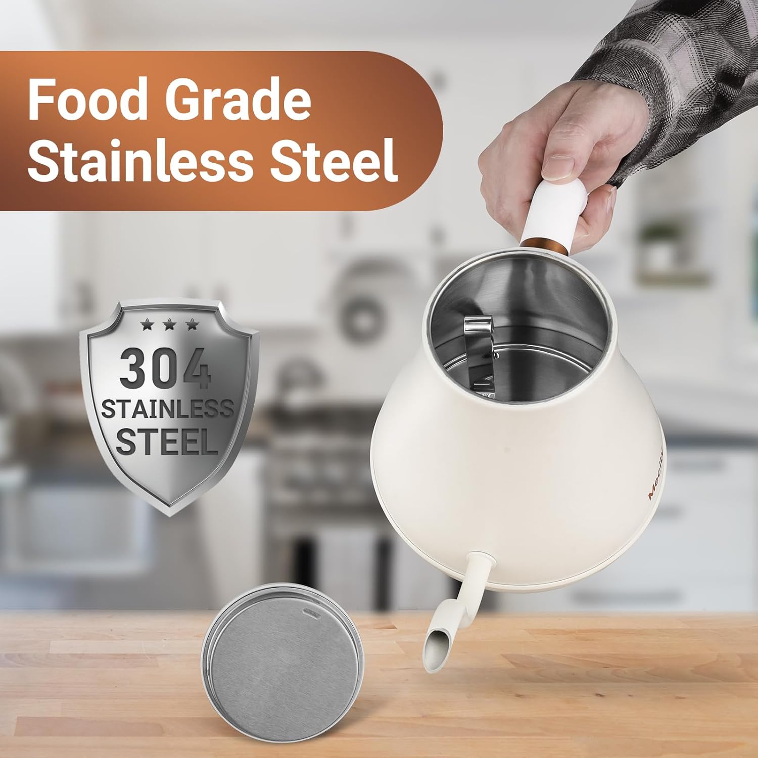 Mecity Electric Kettle Stainless Steel Gooseneck Water Kettle Water Boiler for Pour Over Coffee Fast Heating, Auto Shut Off, 27 fl oz, 1000W, Milk White