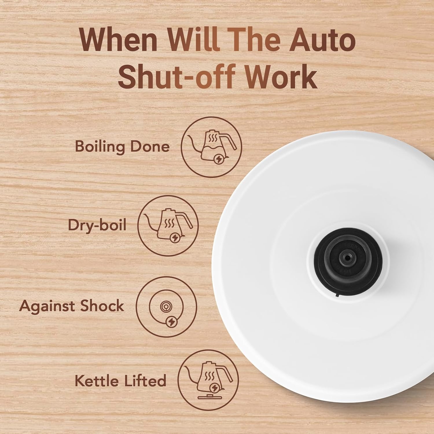 - Safe Boiling: Mecity gooseneck kettle has auto shut-off, dry-boil protection features, you can quickly and easily heat water for your favorite hot beverage without the hassle of a stovetop or traditional kettle.