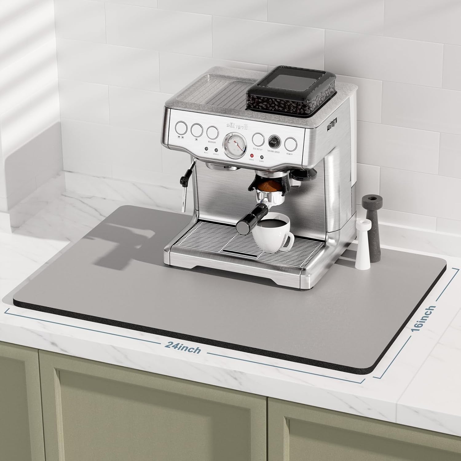 - Versatile Size: Coffee pad for espresso machine accessories measures 16" X 24" fits most counters. Thickened design 0.16 inch thick, which can also be used for any small home household appliances indoors