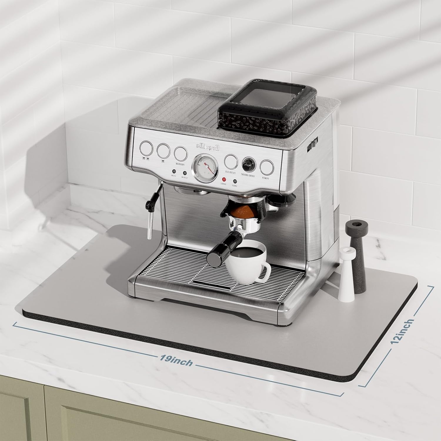 - Versatile Size: Coffee pad for espresso machine accessories measures 12" X 19" fits most counters. Thickened design 0.16 inch thick, which can also be used for any small home household appliances indoors