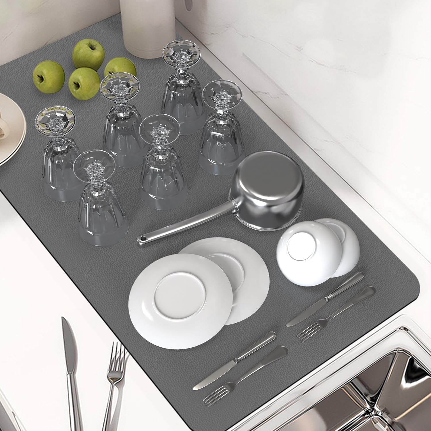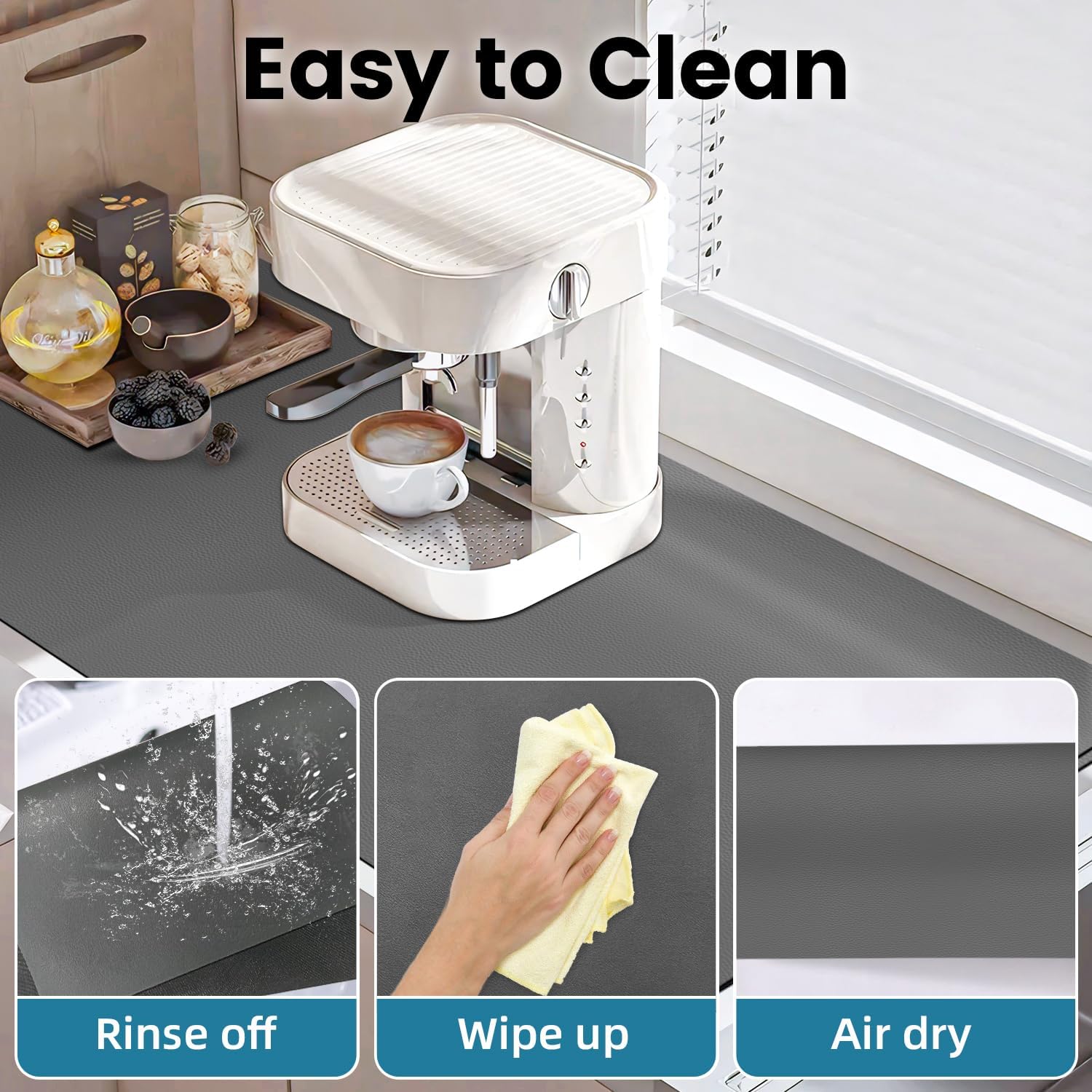 PoYang 31.5"x17" Coffee Mat X-Large, Coffee Bar Accessories for Countertop, Absorbent Dish Drying Mat, Anti-Slip and Hide Stain Pad for Espresso Machine, Espresso Maker and Kitchen Counter, Gray