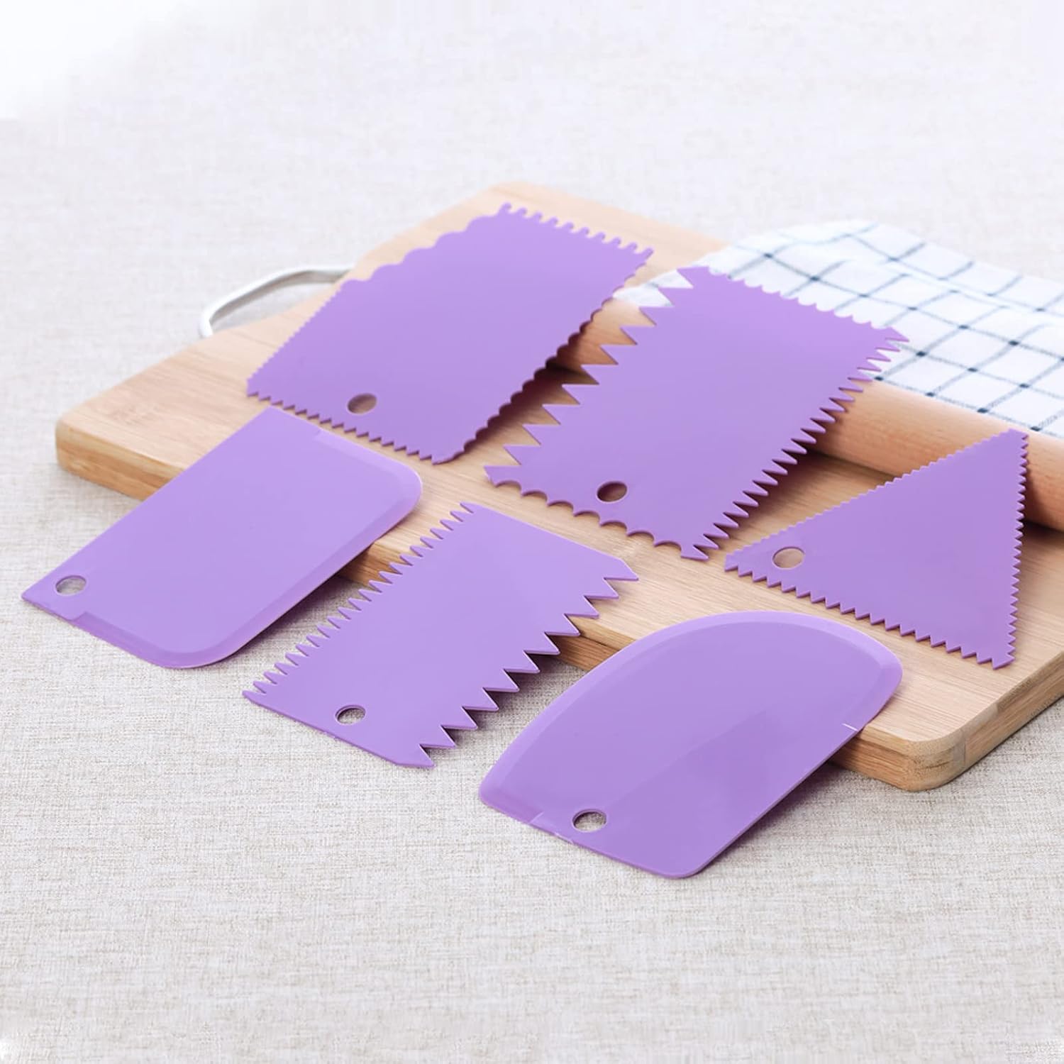 6pcs Cake Scraper Decorating Comb and Icing Smoother Reusable Bread Cream Pizza Cutter-Purple