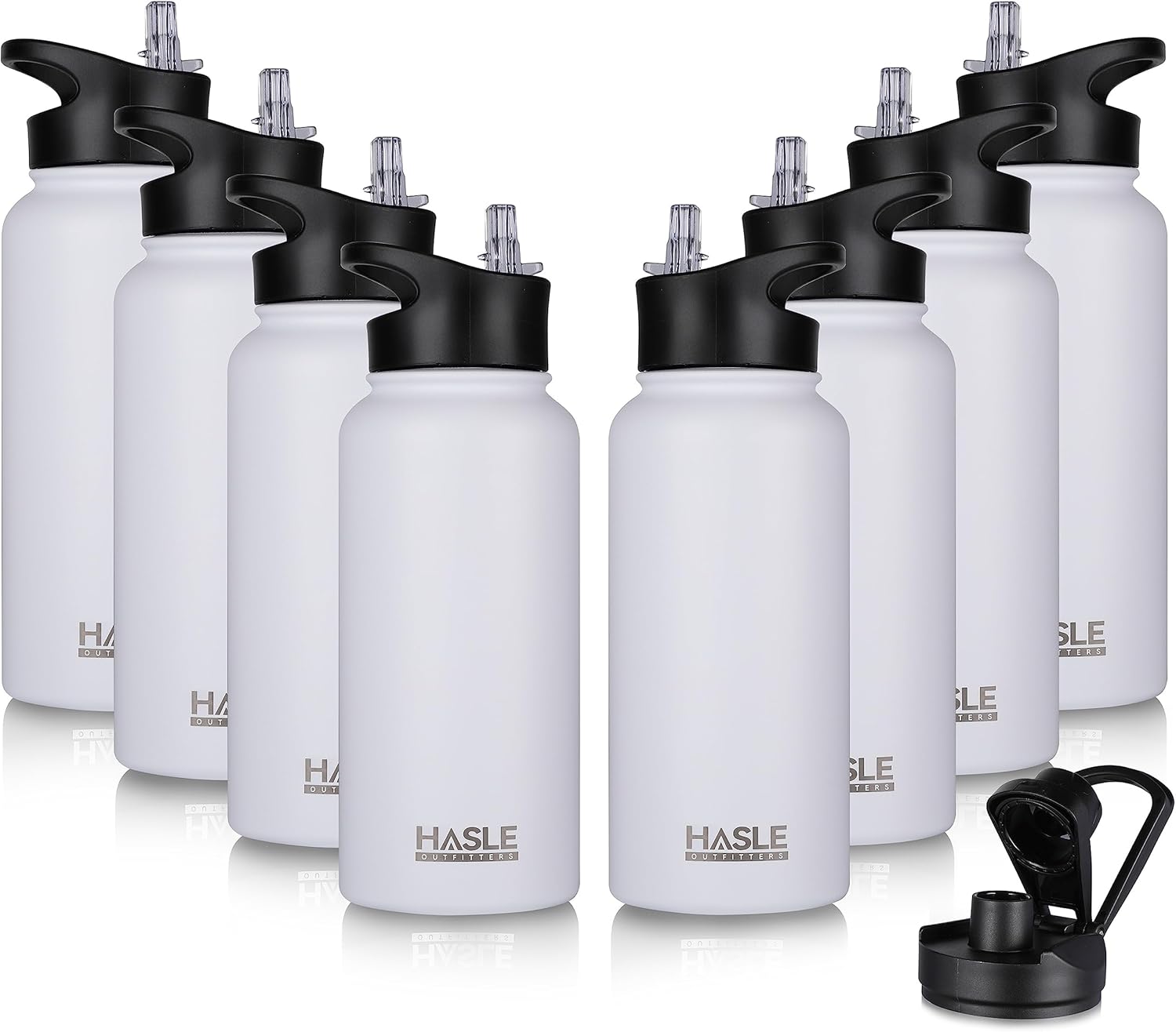 HASLE OUTFITTERS 32 oz Insulated Water Bottle Stainless Steel Double Walled Vacuum Sports Water Bottle with 2 Lids (Straw and Spout Lid) for Gym Camping Hiking(White,8)