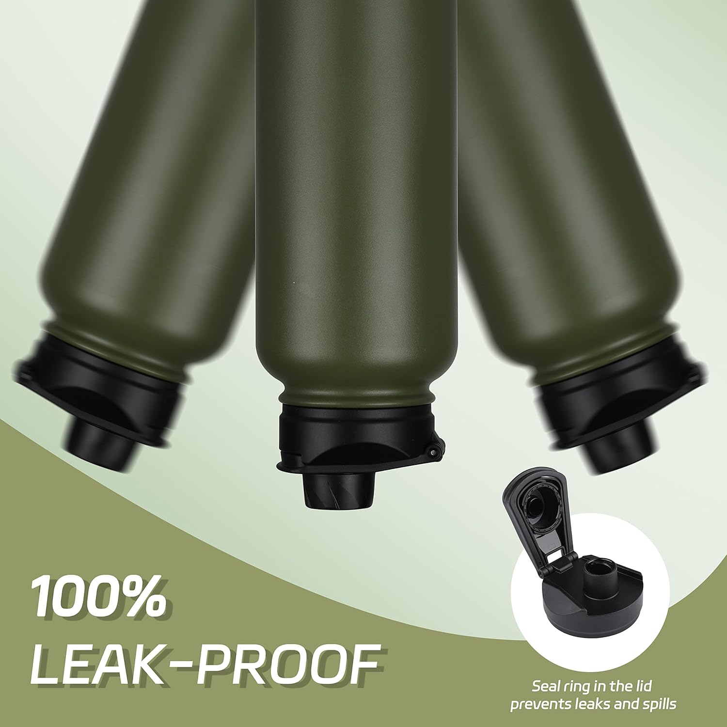 HASLE OUTFITTERS 32 oz Insulated Water Bottle Stainless Steel Double Walled Vacuum Sports Water Bottle with 2 Lids (Straw and Spout Lid) for Gym Camping Hiking(Army Green,8)