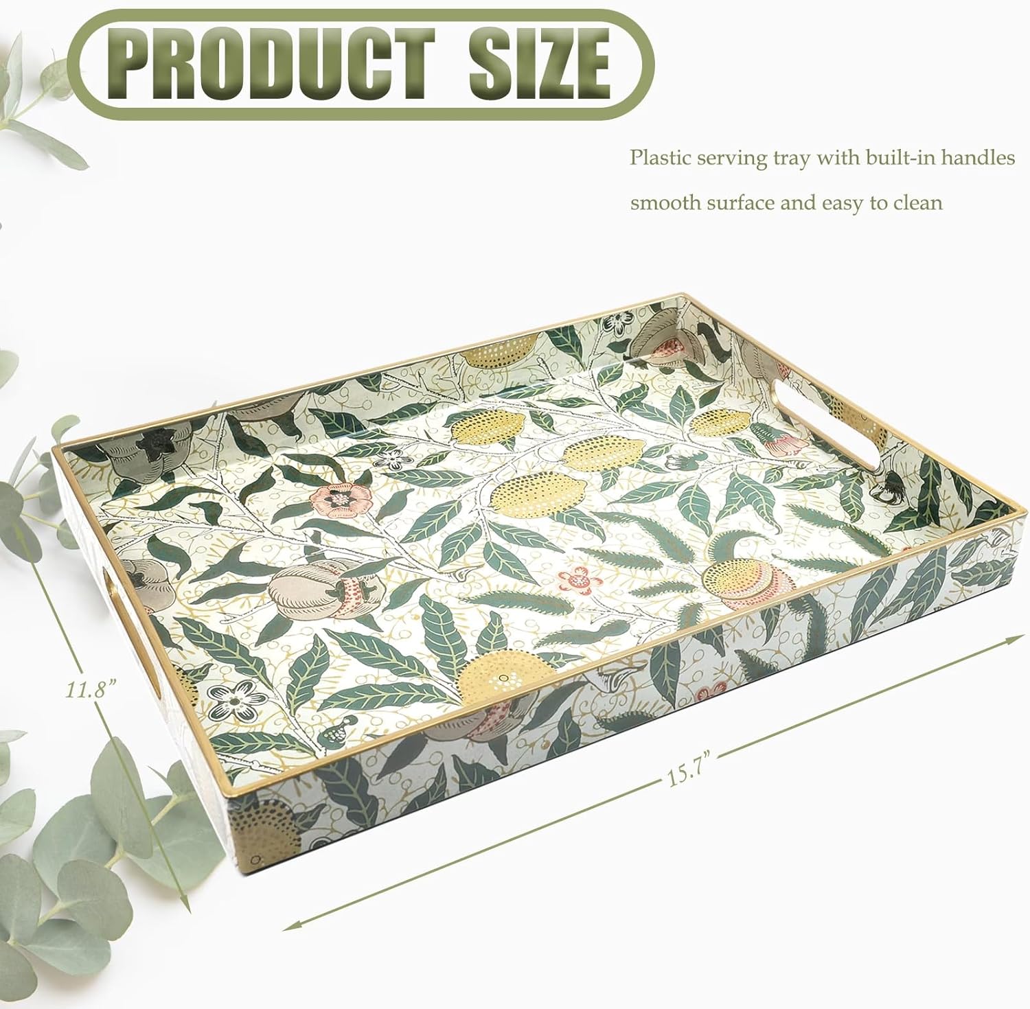 Spsyrine Lemon Serving Tray with Handles, Plastic Decorative Tray for Coffee Table, Living Room, Home Decor