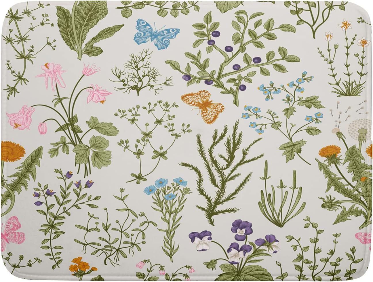 Wild Flowers Herbs Dish Drying Mat for Kitchen Counter Decor 18x24 Inch Vintage Floral Absorbent Reversible Microfiber Dish Drying Pad Sage Plant Dish Drainer Rack Mats for Coffee Bar Kitchen