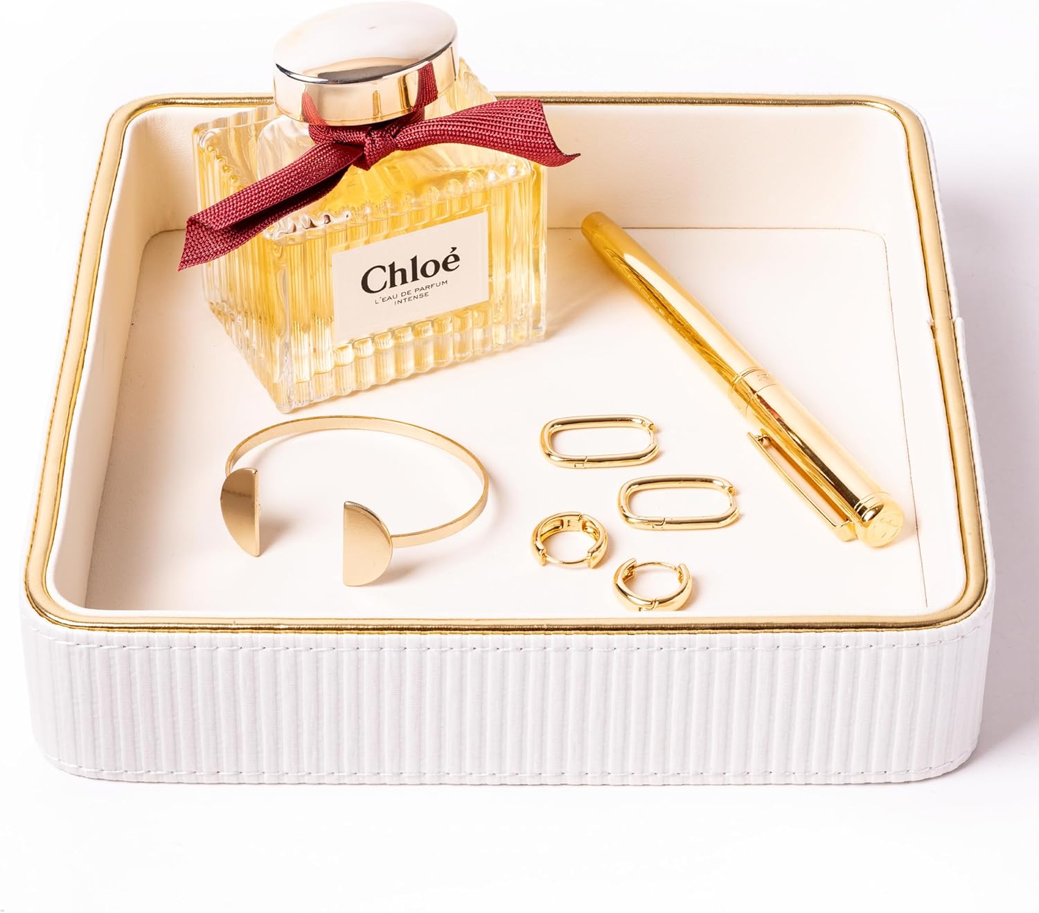 - 🎁 Durability Meets High Design: Crafted from an easy-to-clean small desk tray, our bedside organizer is more than just a pretty face. Hand-stitched for durability, with a water-resistant finish and raised edges to secure your items, it blends practicality and luxury in every detail. Whether you’re searching for a jewelry tray for women, a watch tray for men, or stylish dresser decor for bedroom aesthetic, this versatile small vanity tray is the perfect choice to elevate your space.