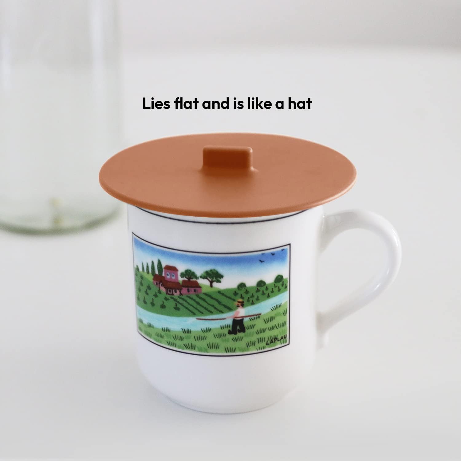 Carrotez Silicone Cup Covers for Drinks, 3.9 Inch Reusable Silicone Mug and Cup Lids for Steeping Coffee and Tea, Set of 2 - Cinnamon