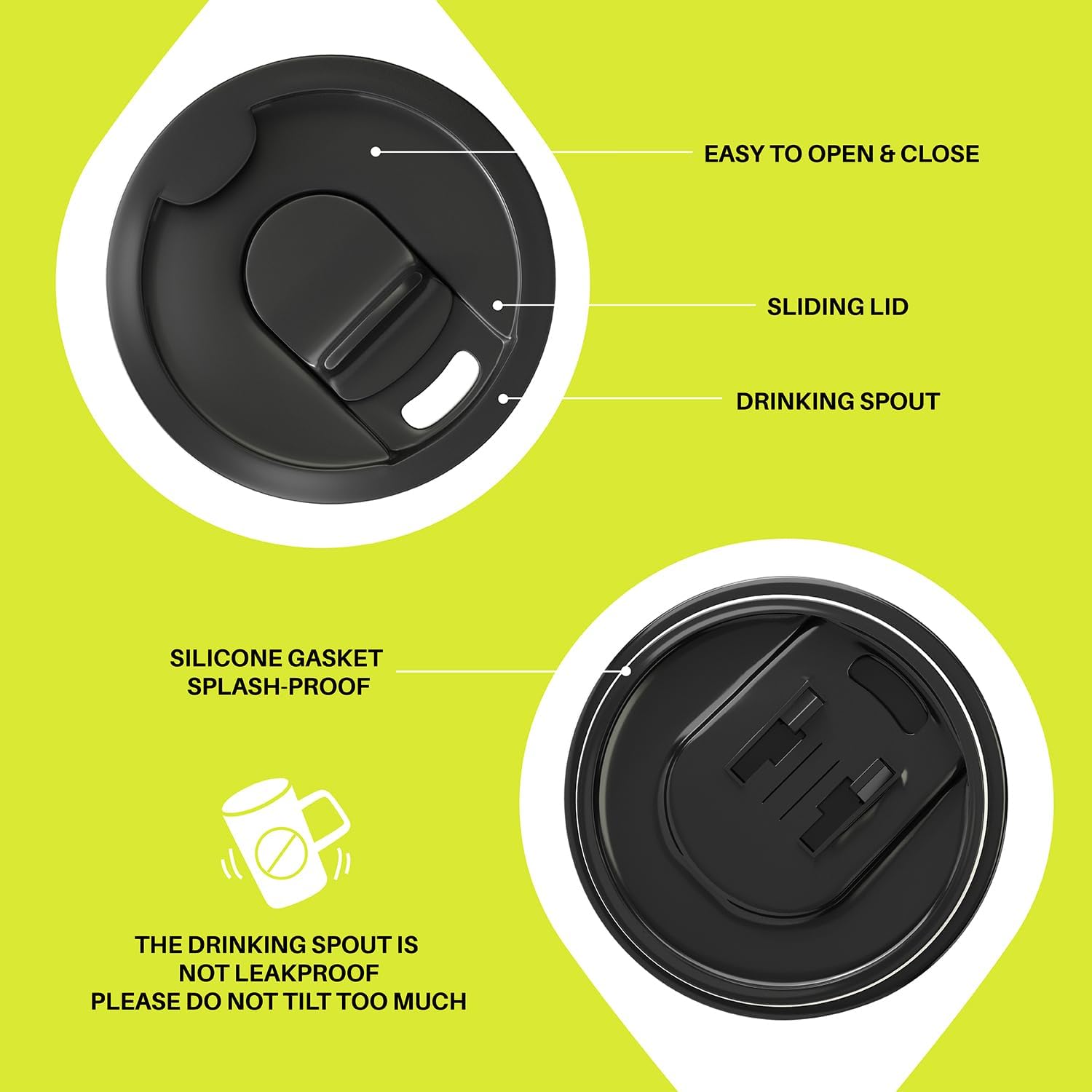 - Special Feature : Condensation Resistant, Double Wall, Non-Slip, Sliding Lid, Spill Proof