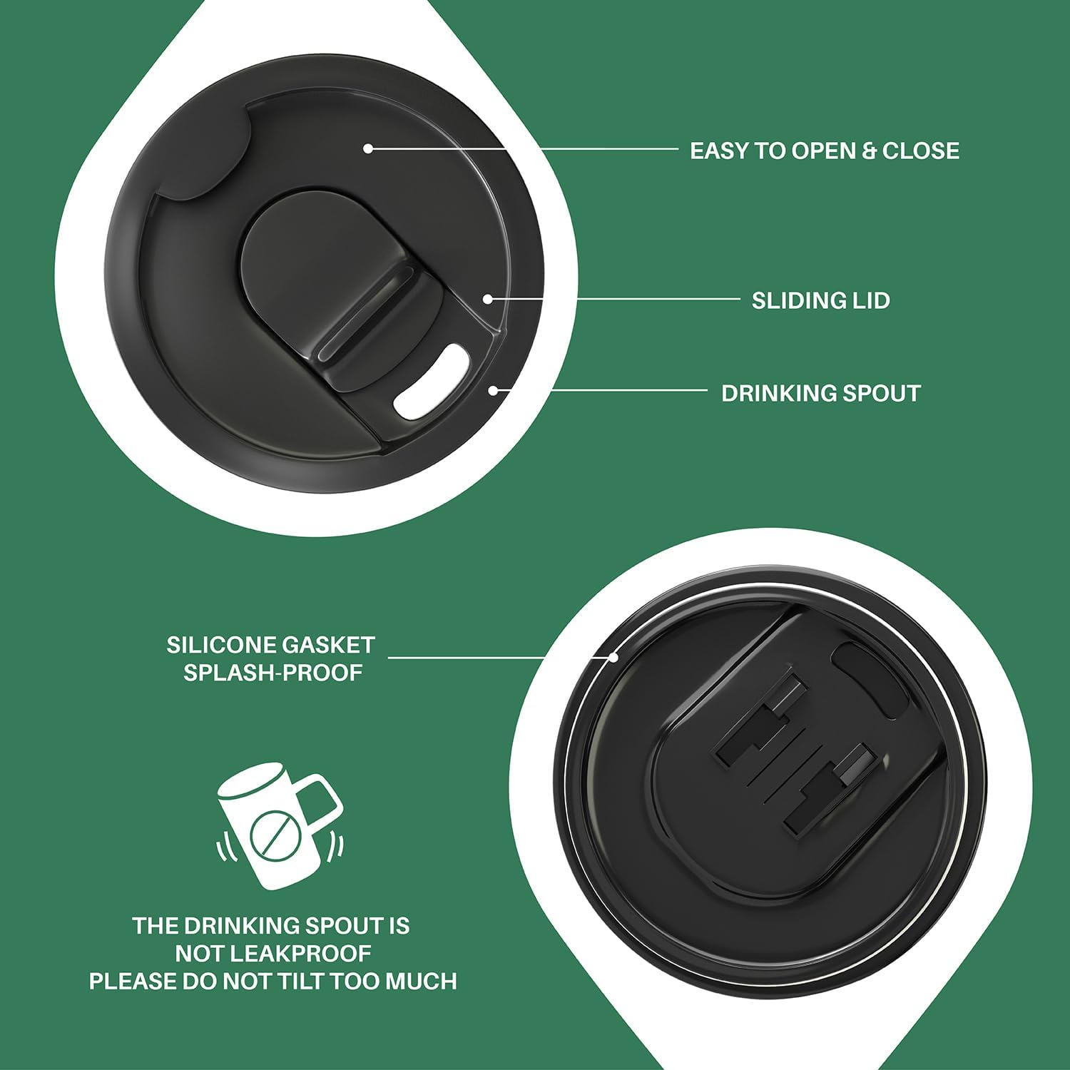 - Special Feature : Condensation Resistant, Double Wall, Non-Slip, Sliding Lid, Spill Proof
