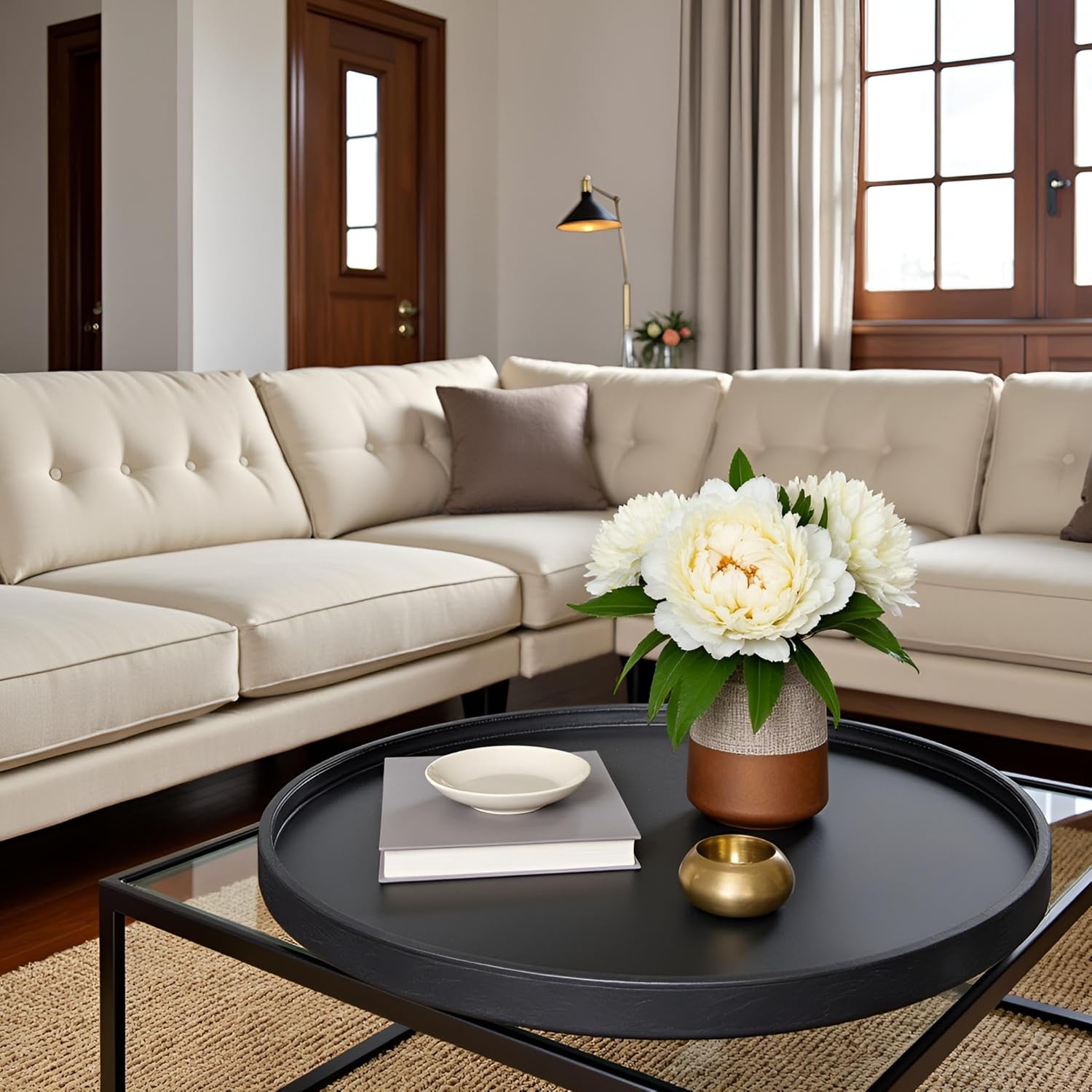30x30 High-End Light Luxury Leather Round Oversized Tray - Ottoman Coffee Food Serving for Family Dinner, Outdoor Picnic & Party Essentials | Versatile Home Decor Tray(30 inch Black)