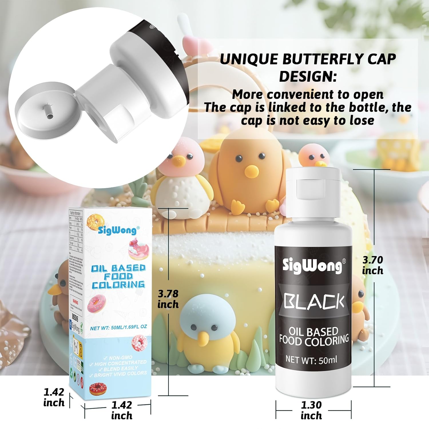 Oil Based Food Coloring for Chocolate - 50ml Black Upgraded Edible Oil Based Food Dye for Cake Decorating, Baking, Candy Melts, Cookie, Icing Frosting, Fondant, Meringues - 1.69 Fl.Oz Bottles