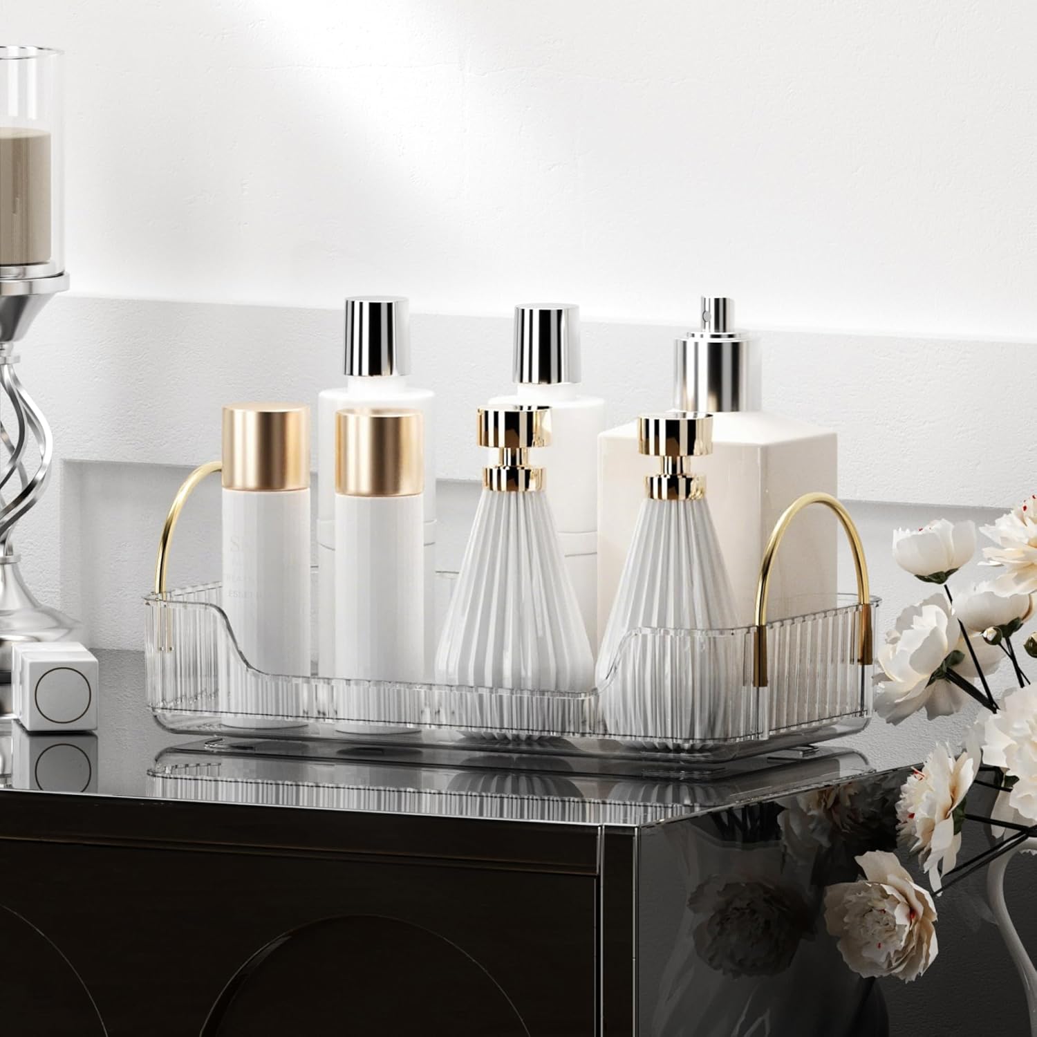 - 【Multi-Color Optional】Bathroom Organizers and Storage made with Gold rod and dark green, amber gold, and transparent white tray, the overall light luxury retro. The new silver rod with smoky gray, low-key luxury with texture. A variety of colors to choose from, not only helps you complete the task of storage but also allows you to easily achieve the room decoration