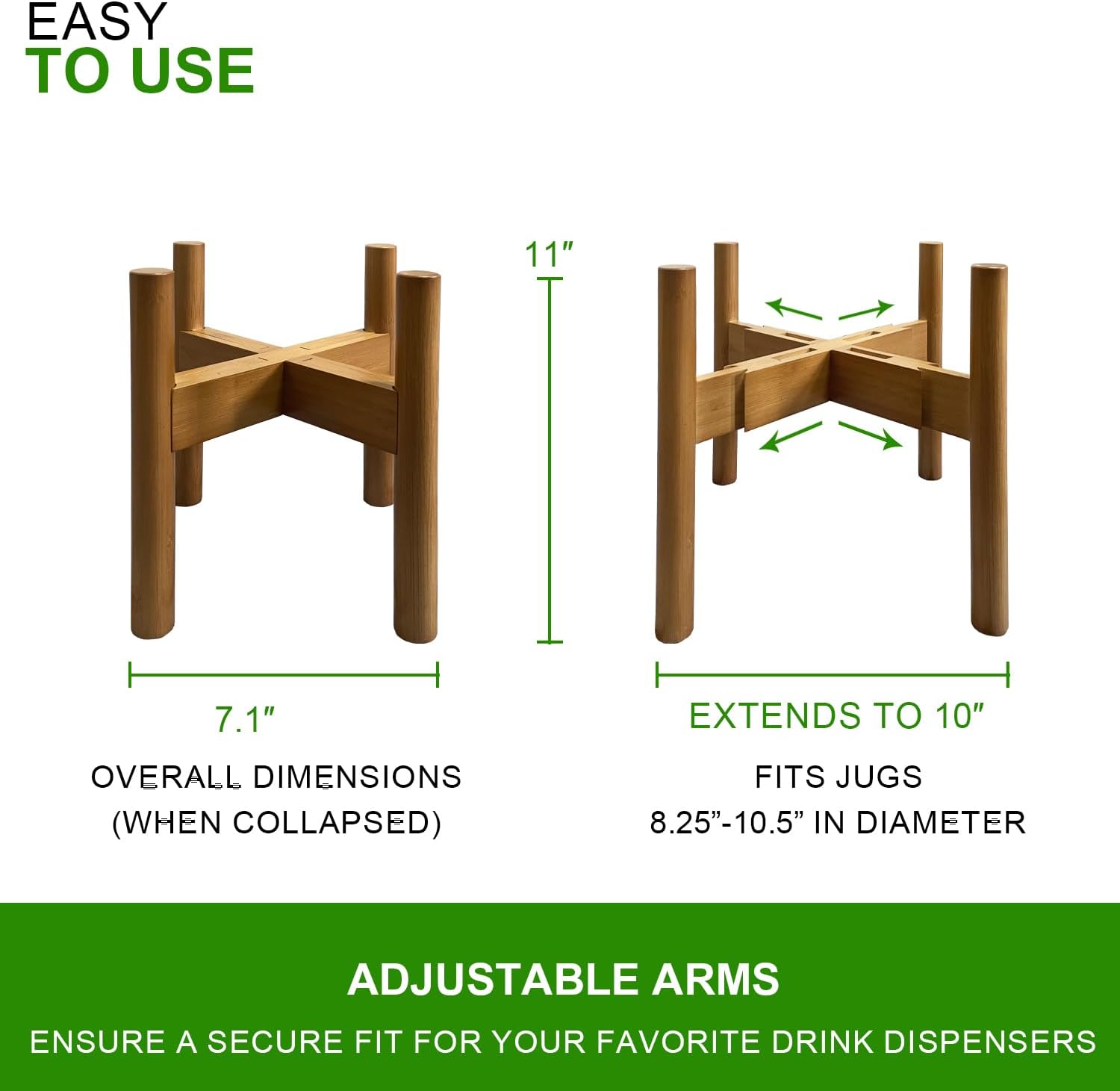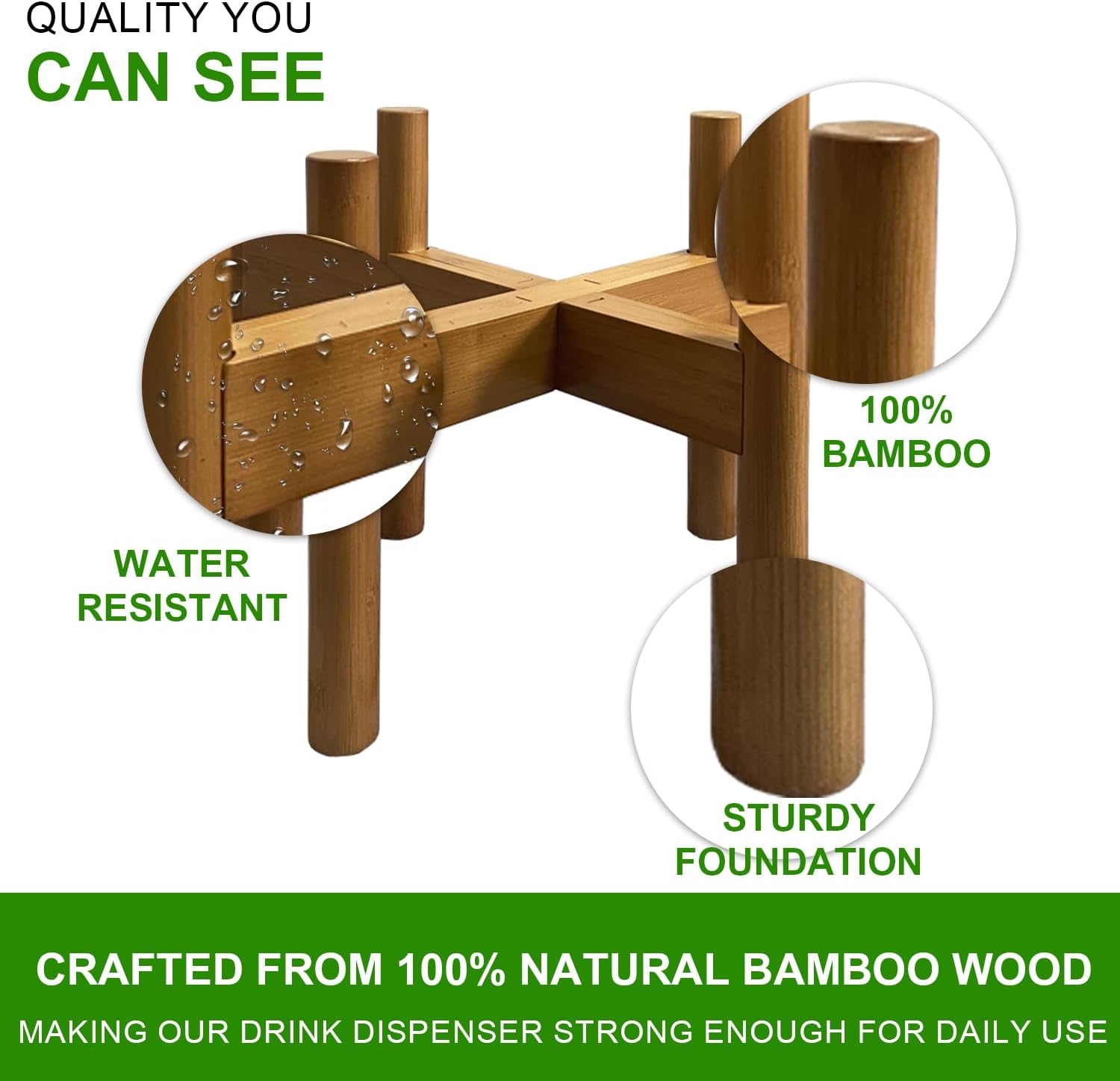 - MULTI-FUNCTIONAL USE - Place any jar with tap on this Minboo bamboo stand to raise it from the surface and make it easier to use and clean. It can be used not only as a water or drink dispenser stand for parties, but also be used as a stand for water filter pitcher, 1-5 gallon water container, water cooler, laundry detergent dispenser, indoor plants, dog bowls, etc.