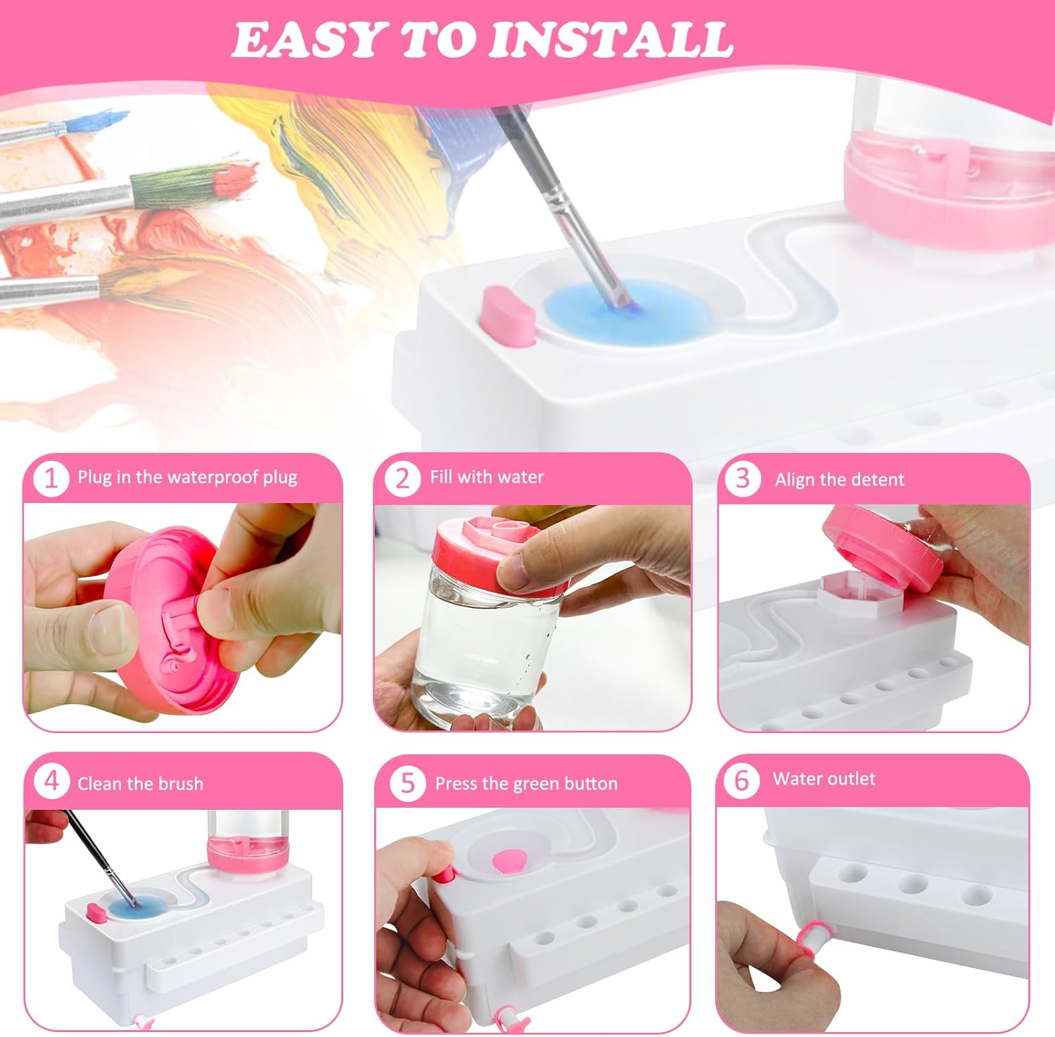 - 【2023 NEW PAINT BRUSH RINSER】No Water Leakage ! our Paint Brush Cleaner are designed with enhanced Tap Water Circulation Design,just by pressing a button o recycle dirty water and Automatic outflow of clean water to reuse.The anti-leakage function of our paintbrush cleaner is improved, there is no longer water leakage in use!