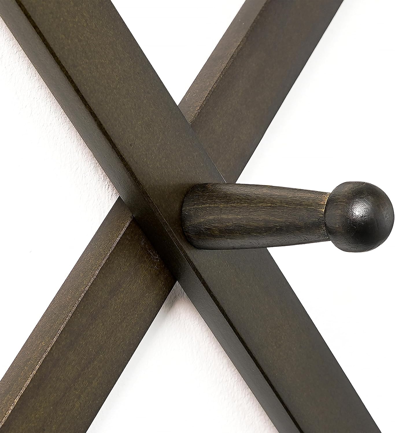 Dseap Accordion Wall Hanger:16'' High Wooden Wall Expandable Coat Rack,Hat Rack Holder,Accordion Hook for Baseball Caps,Coats,16 Peg Hooks,Dark Walnut