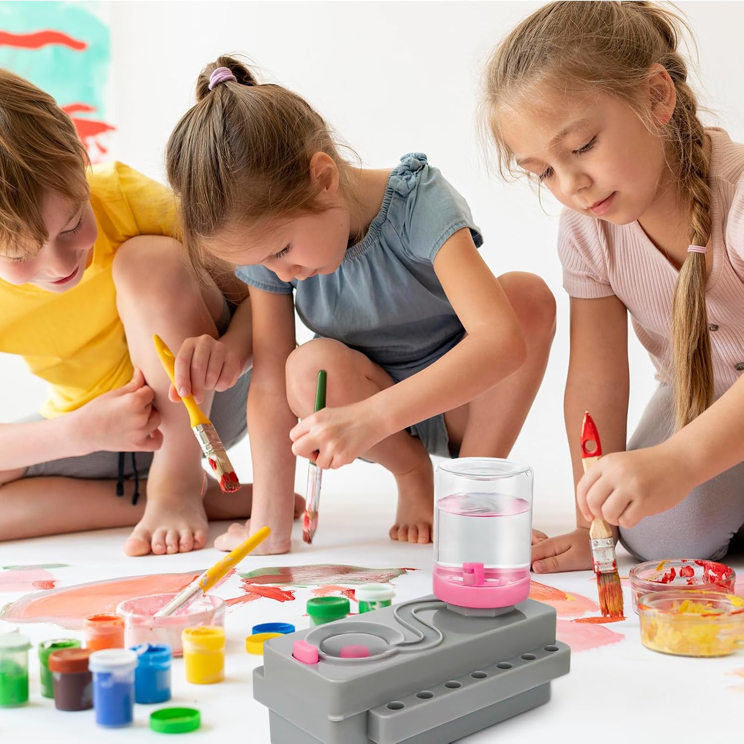 - 【2023 NEW PAINT BRUSH RINSER】No Water Leakage ! our Paint Brush Cleaner are designed with enhanced Tap Water Circulation Design,just by pressing a button o recycle dirty water and Automatic outflow of clean water to reuse.The anti-leakage function of our paintbrush cleaner is improved, there is no longer water leakage in use!