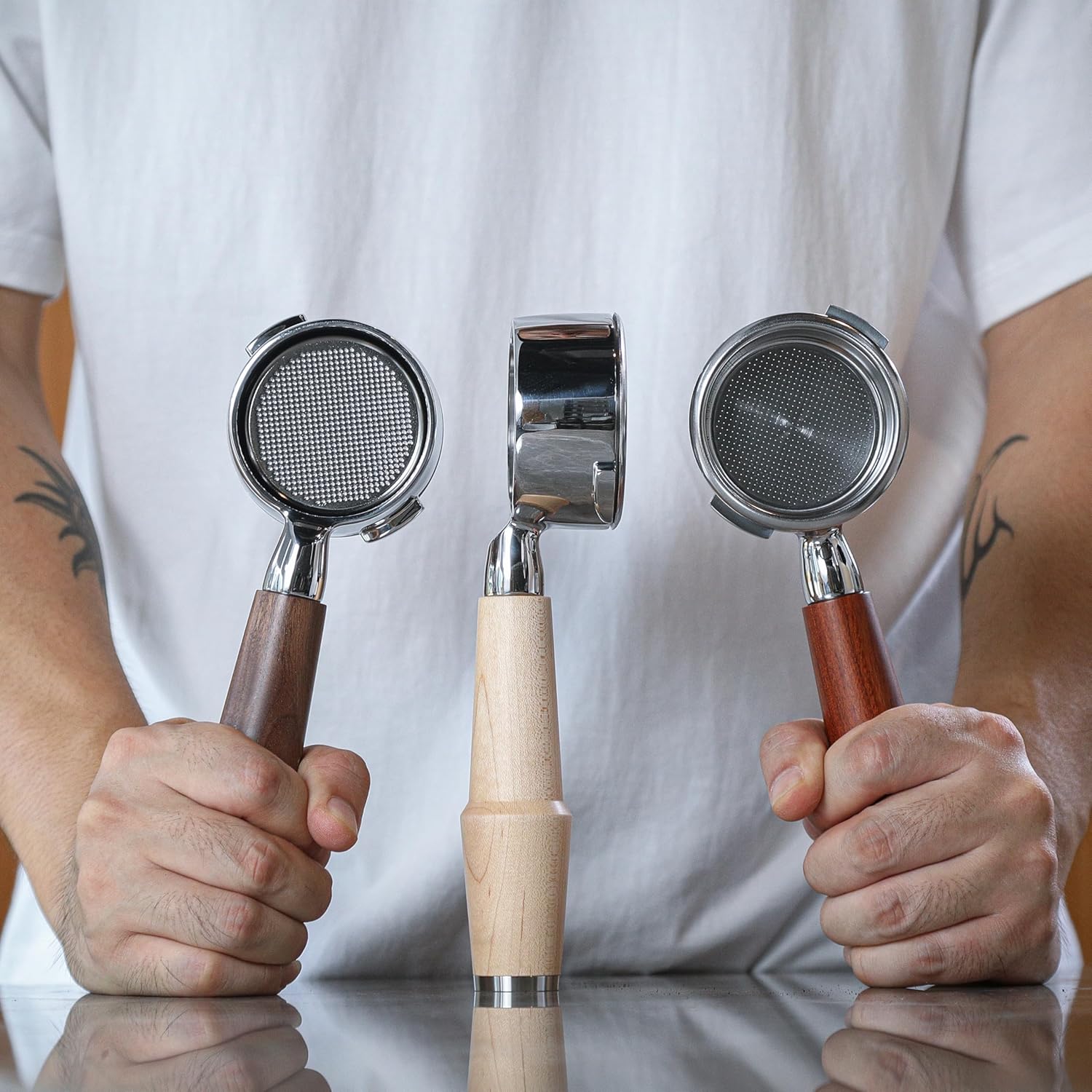 - Each package contains a stainless steel bottomless head, a wooden handle, and a 18-21gr filter basket. Moreover, portafilter is compatible with 58mm baskets from other brands such as IMS and VST