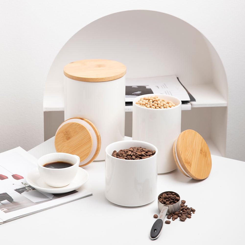 Sweejar Kitchen Ceramic Food Storage Containers, Stackable Canisters for Countertop with Airtight Boomboo Lids for Serving Ground Coffee, Tea, Sugar, Salt and More- 16 Fl Oz (White)