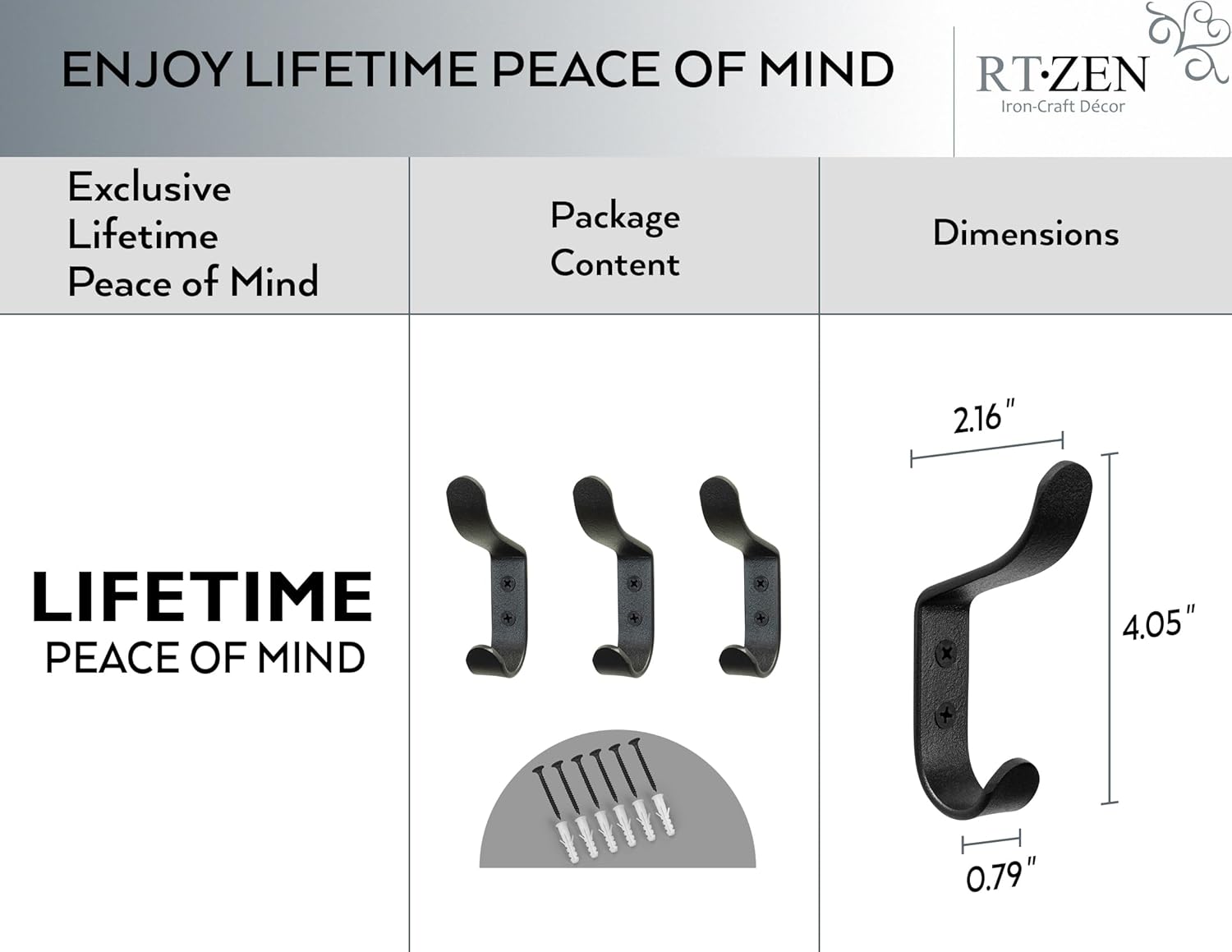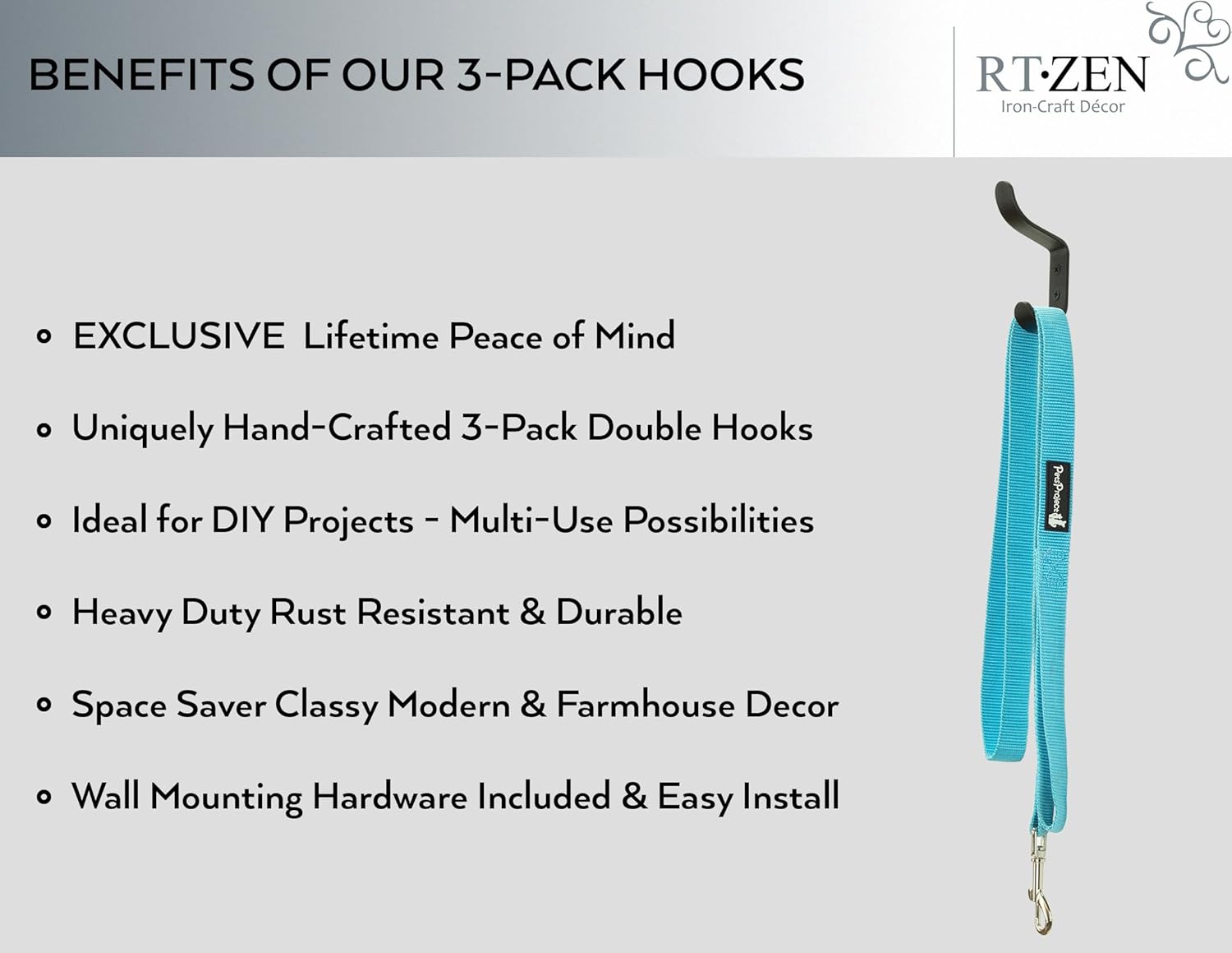 - EXCLUSIVE LIFETIME PEACE OF MIND WROUGHT IRON WALL HOOKS - DIY Decorative 2 Peg Organizer Wall Mounted Coat Hooks, Heavy Duty, Waterproof, Sturdy & Strong 3 Pack Wall Coat Rack with Hooks for Home or Office