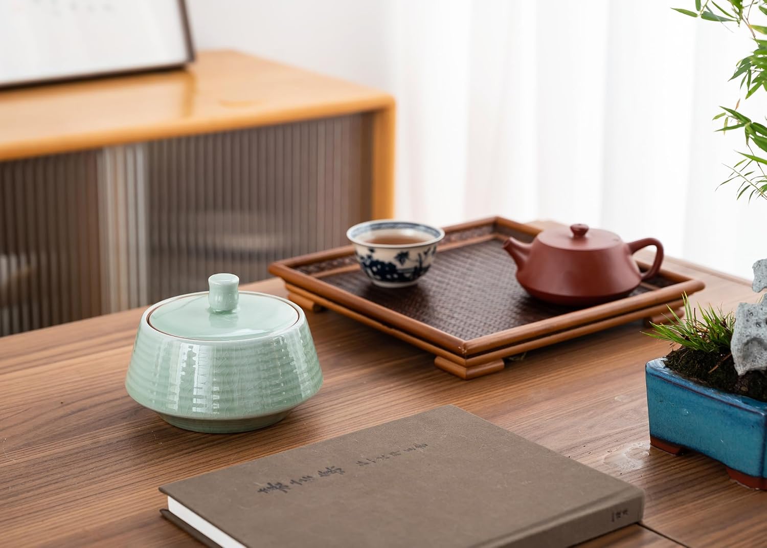 Retro Kitchen Ceramic Canister, 13.53 FL OZ (400 ML) Vintage Food Storage Jar for Tea, Coffee Beans, Herb, Candy, Spices, Nuts (Green(ICE))
