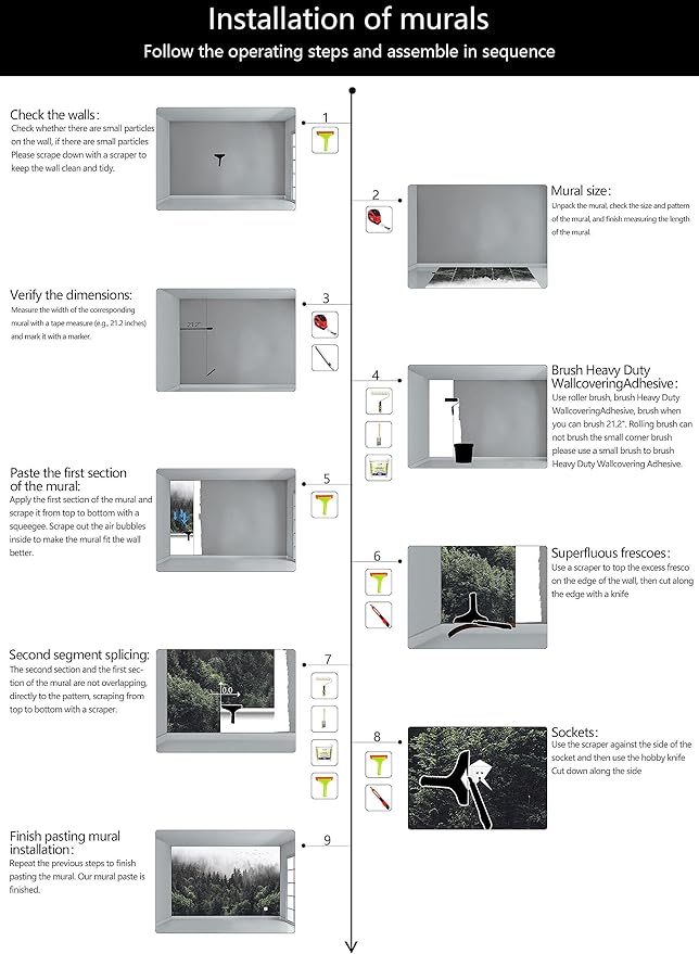 - Construction Installation: Each part of the mural is marked with a serial number underneath, no overlap, direct docking, in order. (Please refer to installation instructions)
