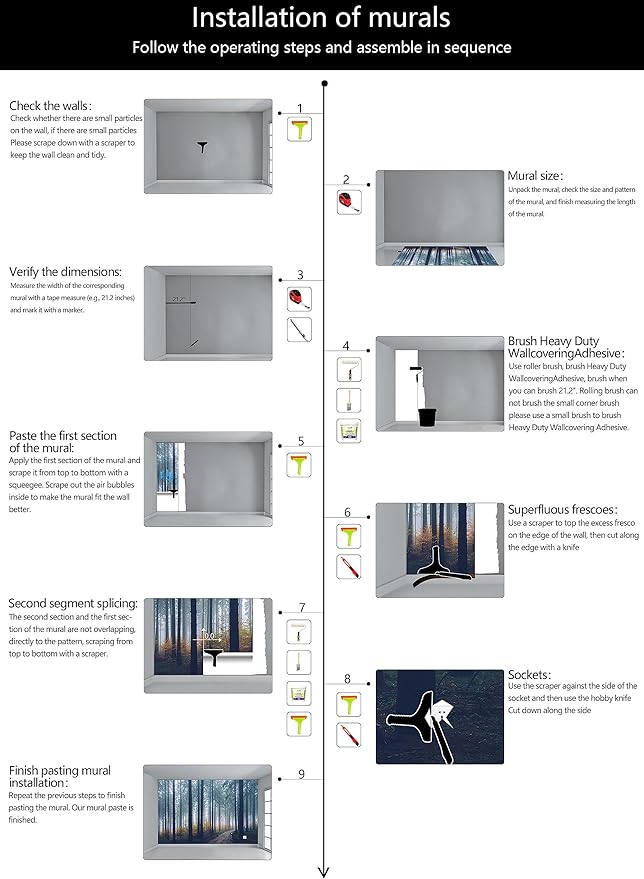 - Warm tip: This mural is not peel and stick, you need to buy your own glue, it is recommended to use Heavy Duty Wallcovering Adhesive.