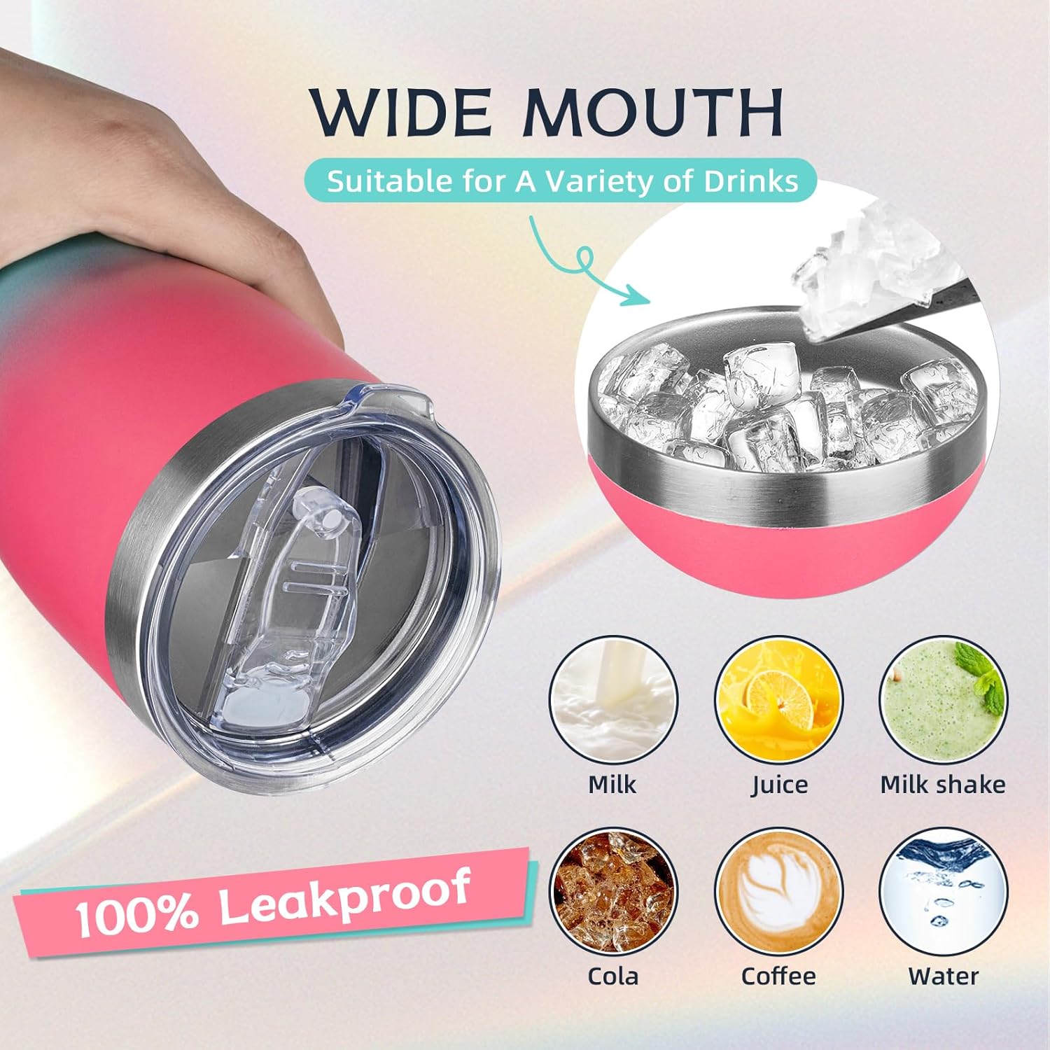 - 🥤【Packing List】: 20oz insulated coffee tumbler with leak-proof lid, two stainless steel straws (one curved and one straight), straw cleaning brush is a great addition (HAND WASH RECOMMENDED). Best for home, office, camping, vacation, sports, travel, etc