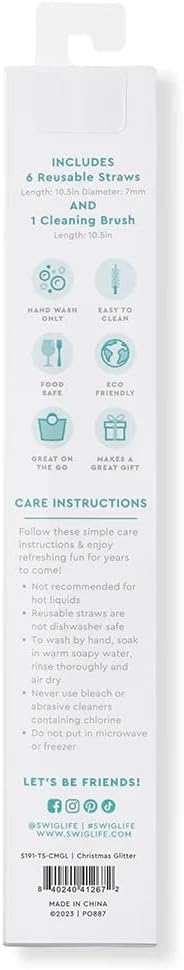 Swig Life Reusable Straws Christmas Glitter Tall Straw Set & Cleaning Brush, Each Straw is 10.25 inch Long (Fits Swig Life 20oz Tumblers, 22oz, and 32oz Tumblers)