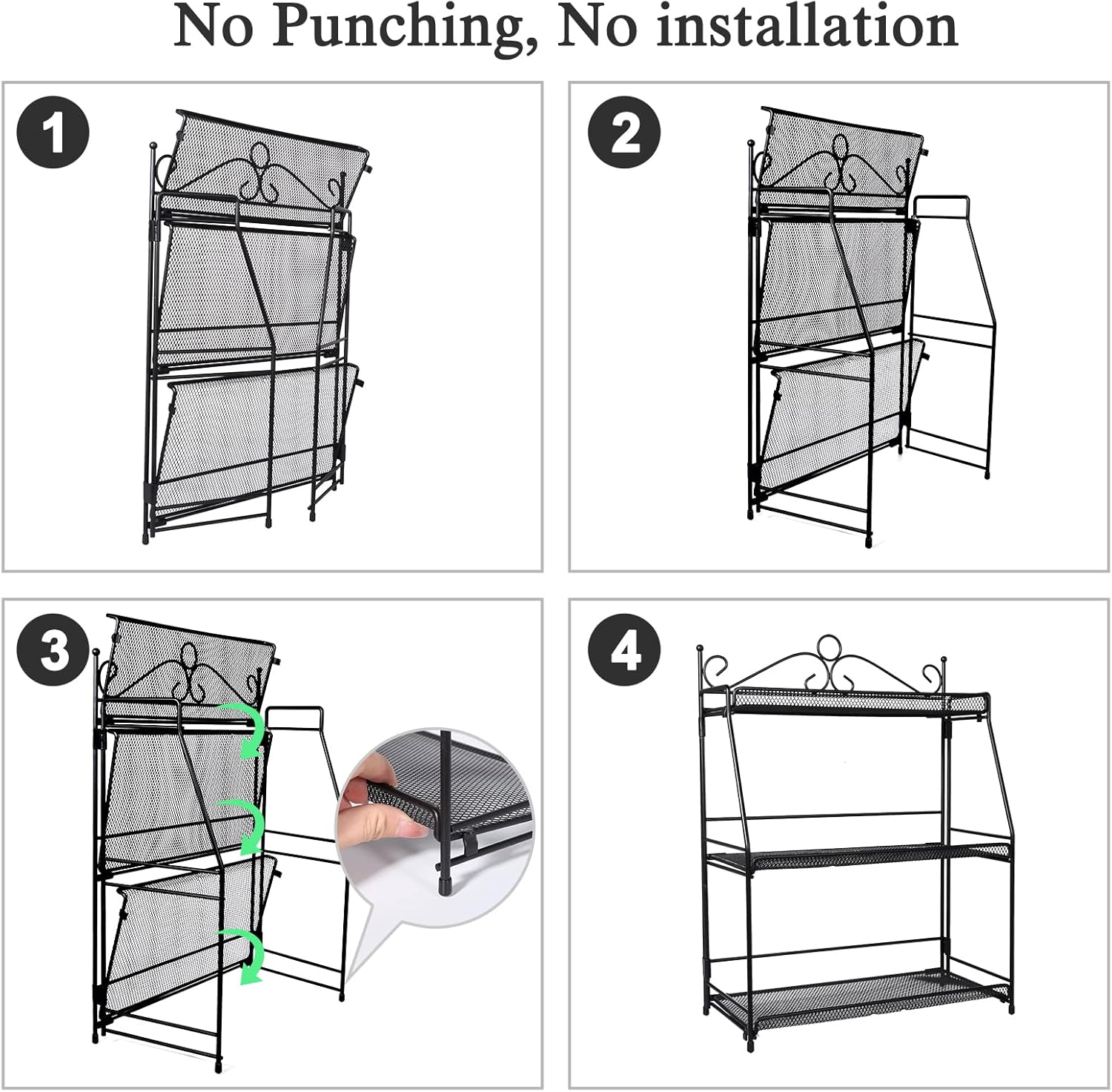 Uten Standing Spice Rack 3 Tier Metal Foldable and Durable Kitchen Rack for Countertop Kitchen Bathroom, Shelf Organizer, Standing Stainless Steel Tiered Shelf