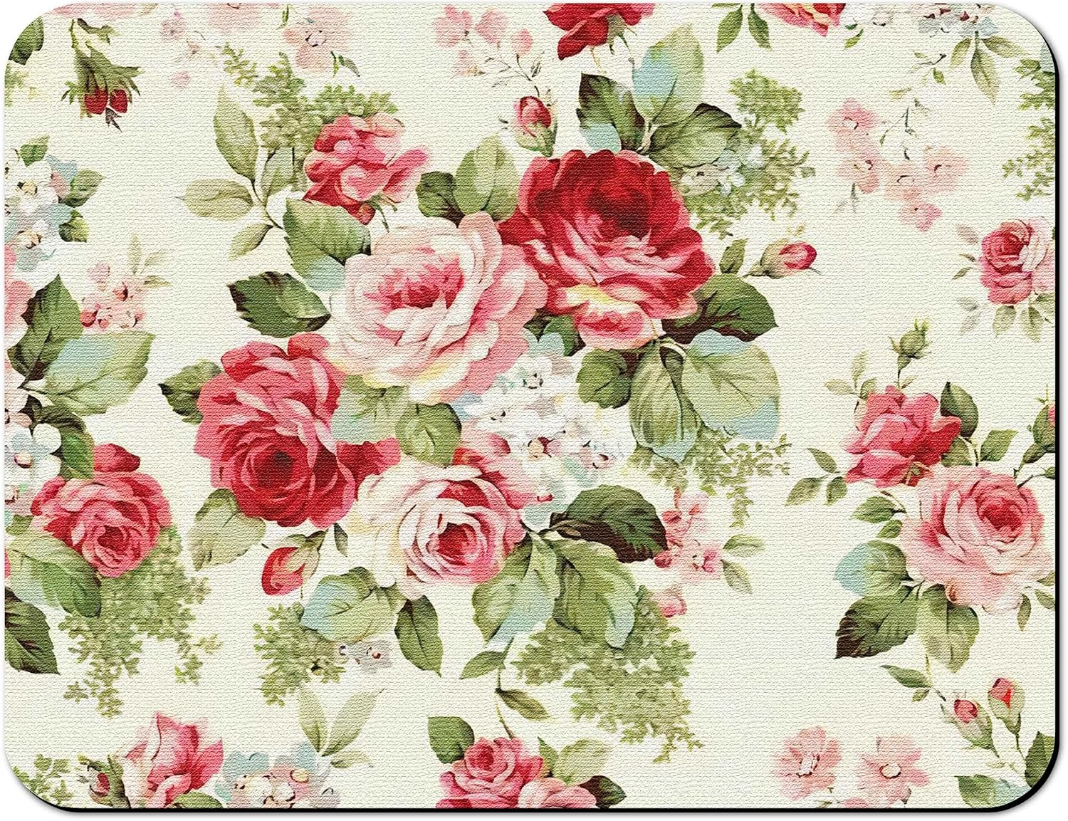 Rubber Dish Drying Mat for Kitchen Counter Large Red Roses Floral Washable Quick Home Coffee Pad Fit Under Sink,Bar,Utensils or Stemware (24x18in)