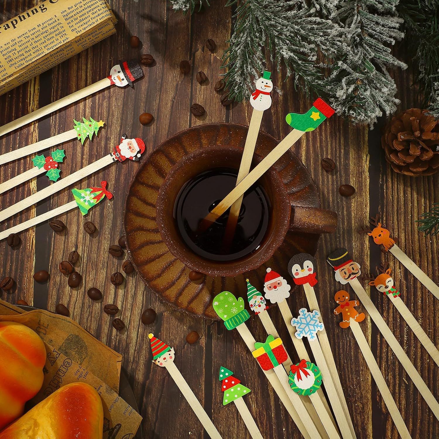- Vibrant Patterns and Designs: the top of wooden stir sticks comes in vibrant colors and patterns; Their Christmas themed designs brighten up festive decoration, including gingerbread man, penguin, snowman, Christmas stocking, bell, berry, deer, snowflake and more, adding a fun touch to your Christmas parties and gatherings