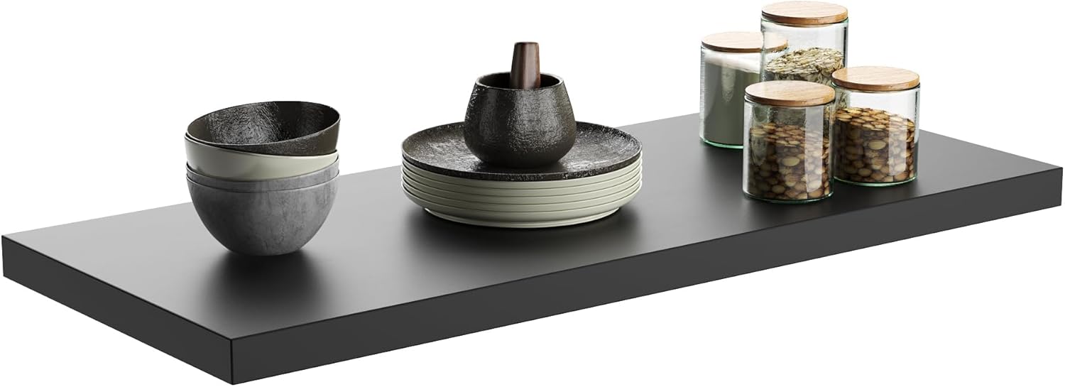Wall Shelf Set of 1, Black Floating Shelves 30 in W x 10 in D x 1 in H, Wooden Floating Wall Shelf with Invisible Brackets for Living Room/Bedroom/Bathroom/Kitchen Storage and Decor