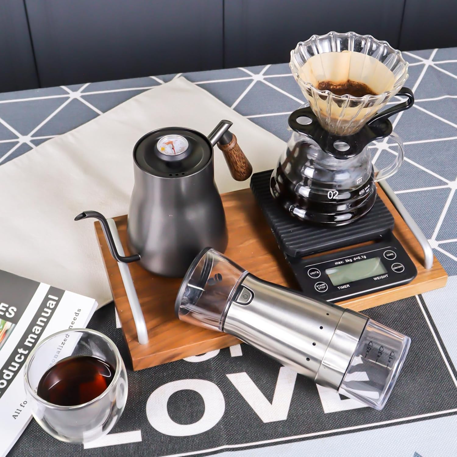 - ☕The electric coffee grinder ensures freshly ground beans at all times, and the pour-over kettle allows for precise and controlled pouring. With this set, you can enjoy the best coffee in nature.
