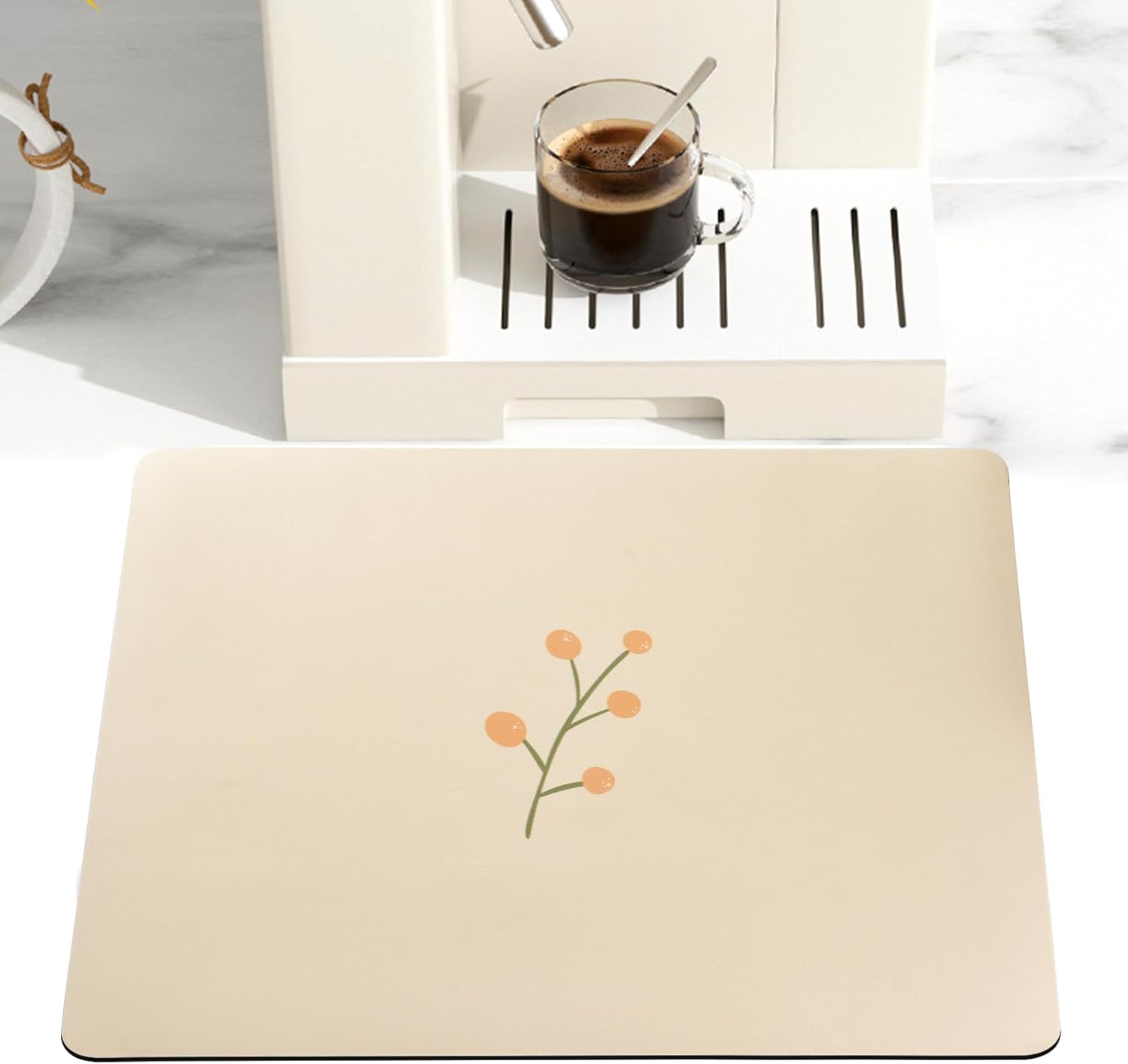 - 【Widely Usage】The coffee drying mat can not only be used under the coffee machine, but also can use it under water filters, dish strainer, water distillation machine, ice maker, or as a pet peeding mat, etc. With its super water absorption and quickly drying properties, we can widely use it in the drying mat of countertop, kitchen cabinet, bathroom cabinet, room table, blender, water dispenser, dishwasher, tableware, cup, etc.