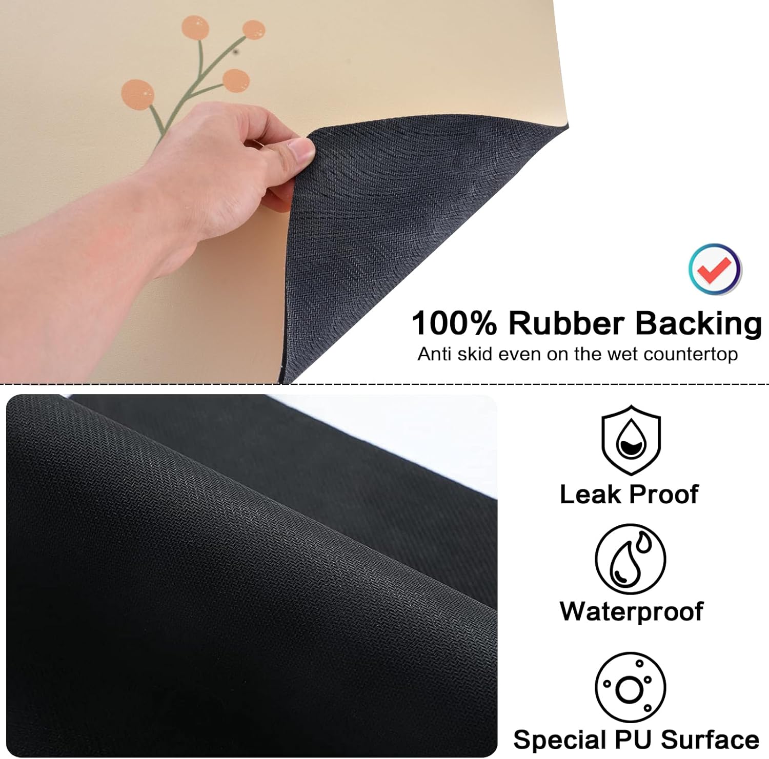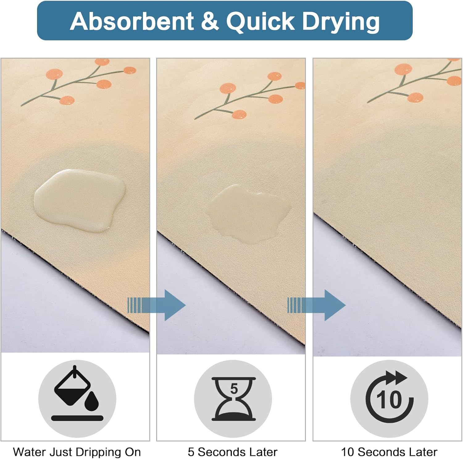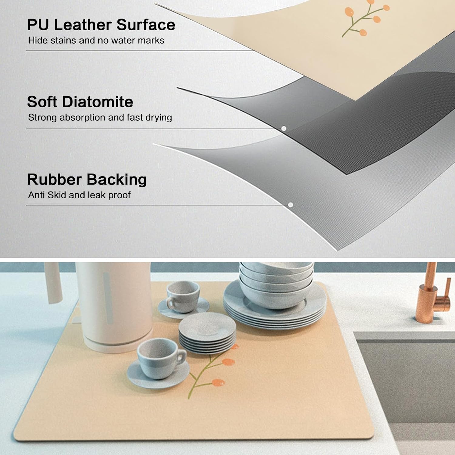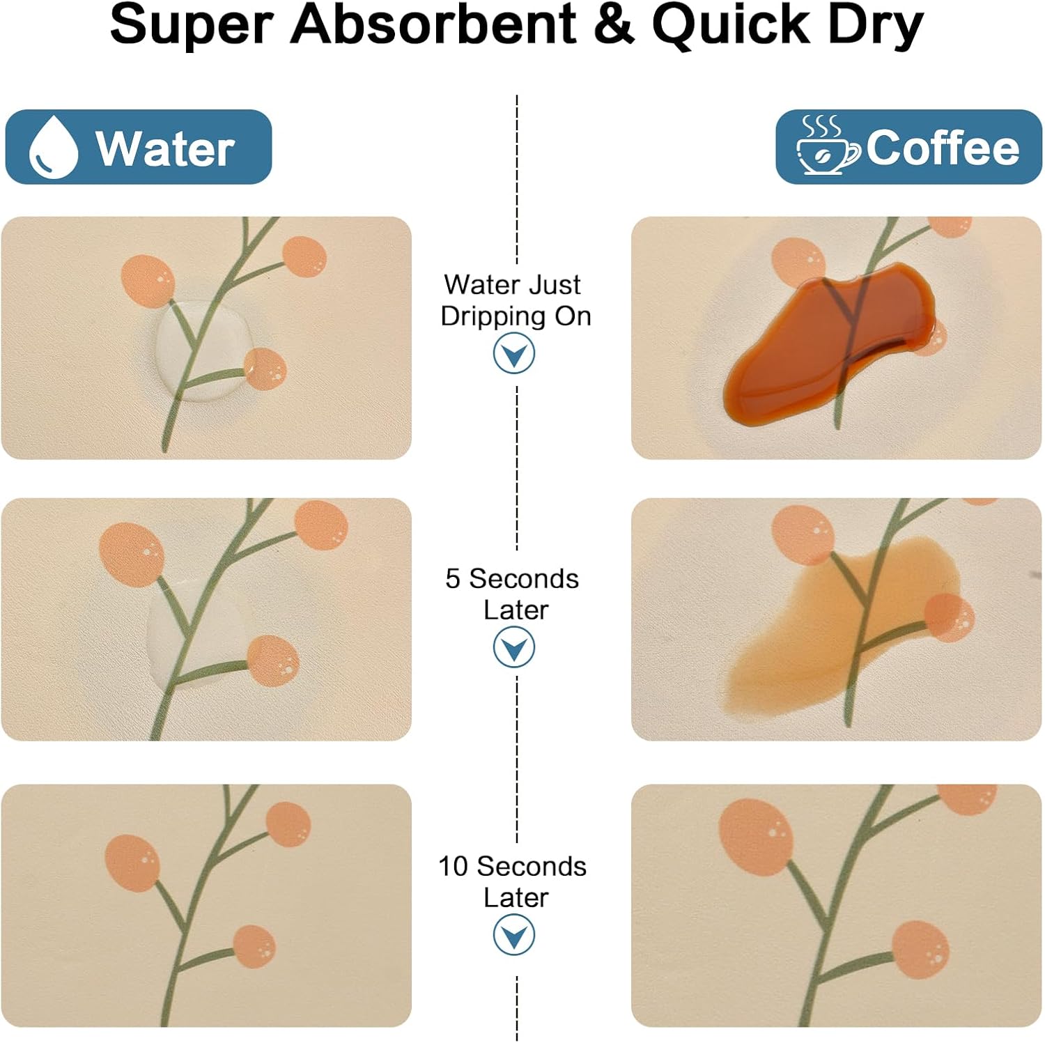 - 【No Water Mark】Special PU surface can easily hide water stains, coffee stains, milk stains, tea stains and any other dark and messy stains. Quick soak up the splahed water or coffee no need to use the paper towel to clean. The new performance is more convenient and clean than the traditional drying pad.