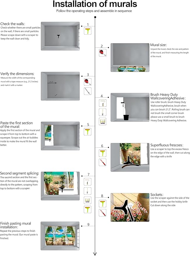 - Construction Installation: Each part of the mural is marked with a serial number underneath, no overlap, direct docking, in order. (Please refer to installation instructions)