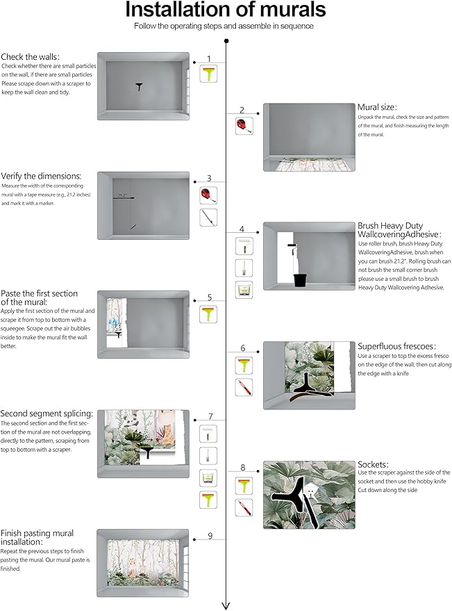 - Construction Installation: Each part of the mural is marked with a serial number underneath, no overlap, direct docking, in order. (Please refer to installation instructions)