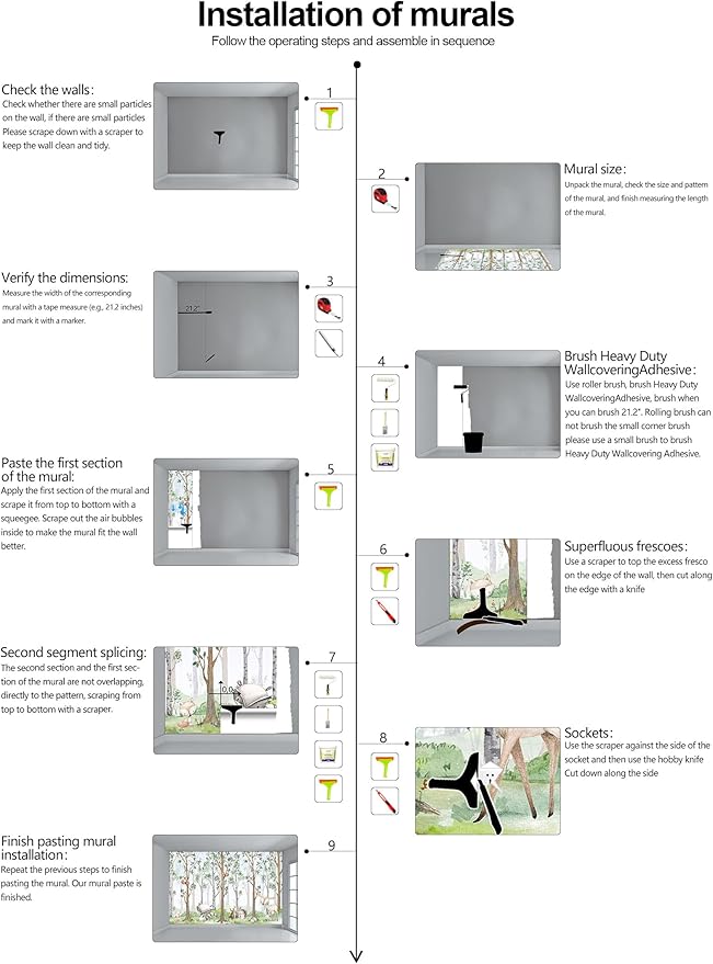 - Warm tip: This mural is not peel and stick, you need to buy your own glue, it is recommended to use Heavy Duty Wallcovering Adhesive.