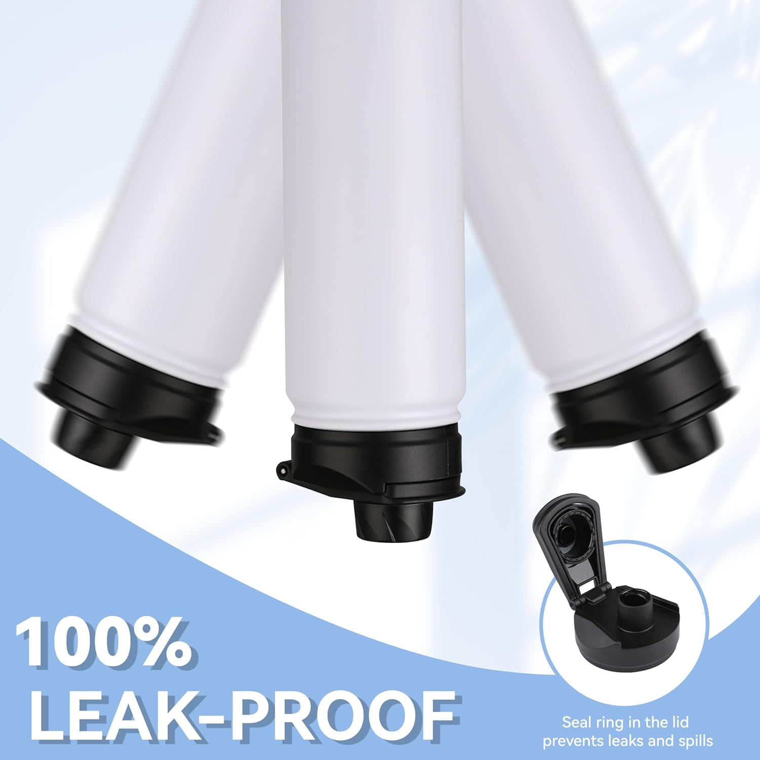 - 【Spout Lid & Straw Lid】 This water bottle comes with 2 lids: an innovative leak-proof spout lid and a newly improved straw lid that has been enhanced for better flow. Easily fill your water bottle with ice and clean it through the wide mouth opening. Both allow easy one-handed or hands free sipping, they are designed for you to drink anytime, anywhere.