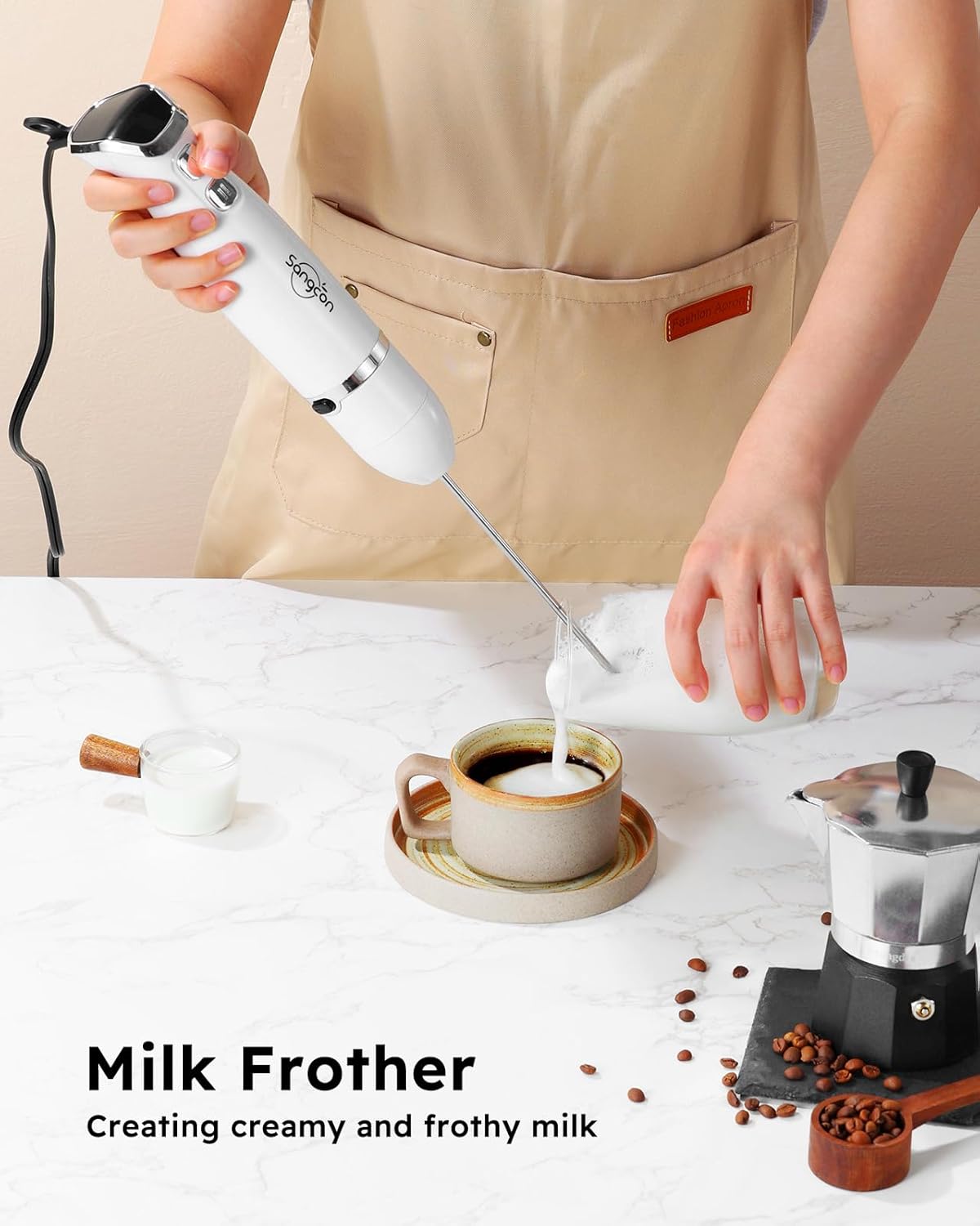 Sangcon Immersion Blender Handheld, 3-in-1 Hand Blender Electric, 400W Handheld Blender, Stainless Steel Blade Stick Blender with Whisk, Milk Frother Attachments - White